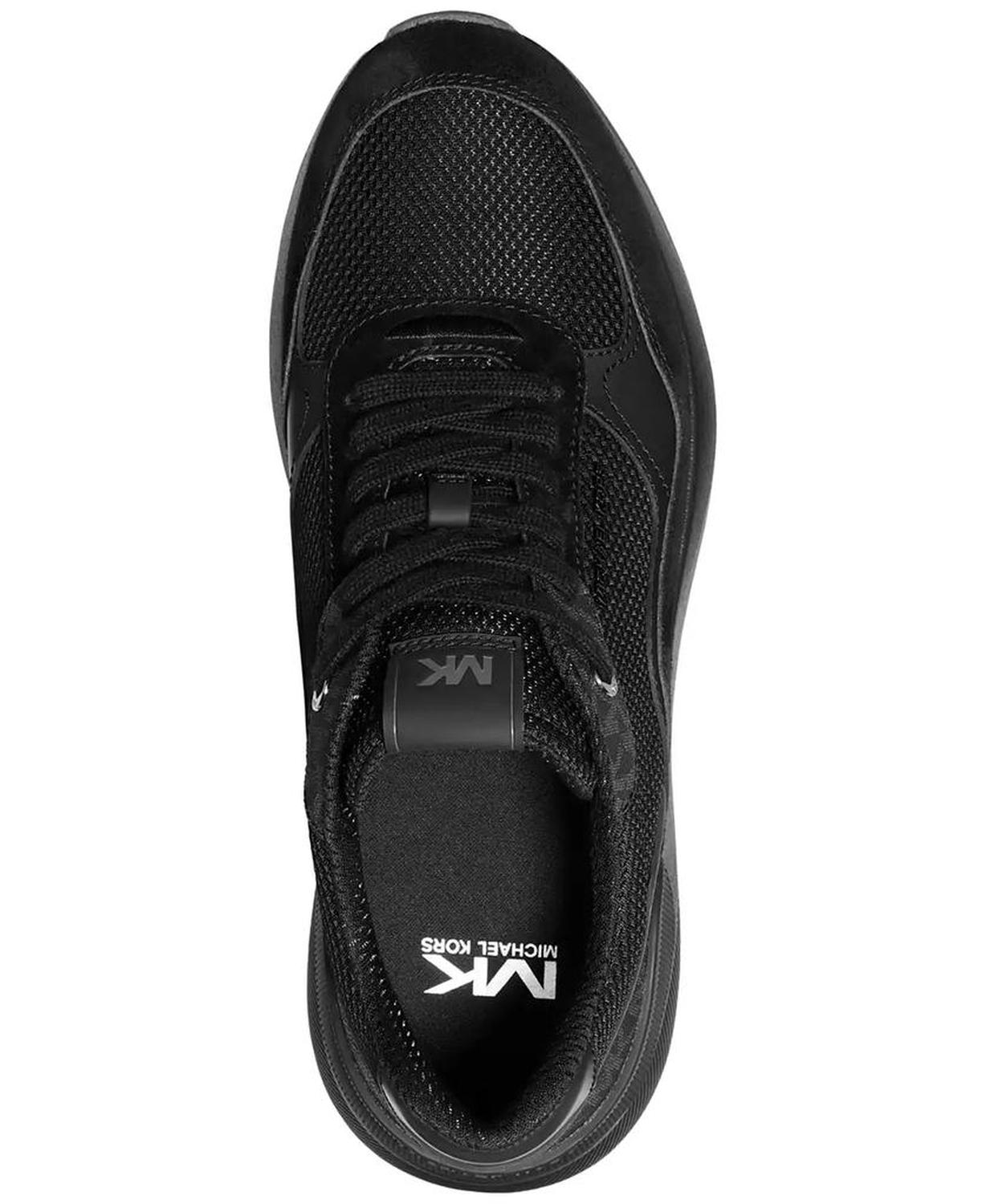 Add an extra pop of style to your stride with these cool Trevor running sneakers from Michael Kors. Round toe Lace-up closure Non-removable cushioned insole; eco-comfort sock liner; mesh panels on upper for breathability Durable and flexible rubber sole Brand detailing on lateral side, tongue and back heel counter; Italian suede detailing on upper; classic MK Signature logo Leather, suede, polyester upper; polyester lining; rubber outsole Imported
