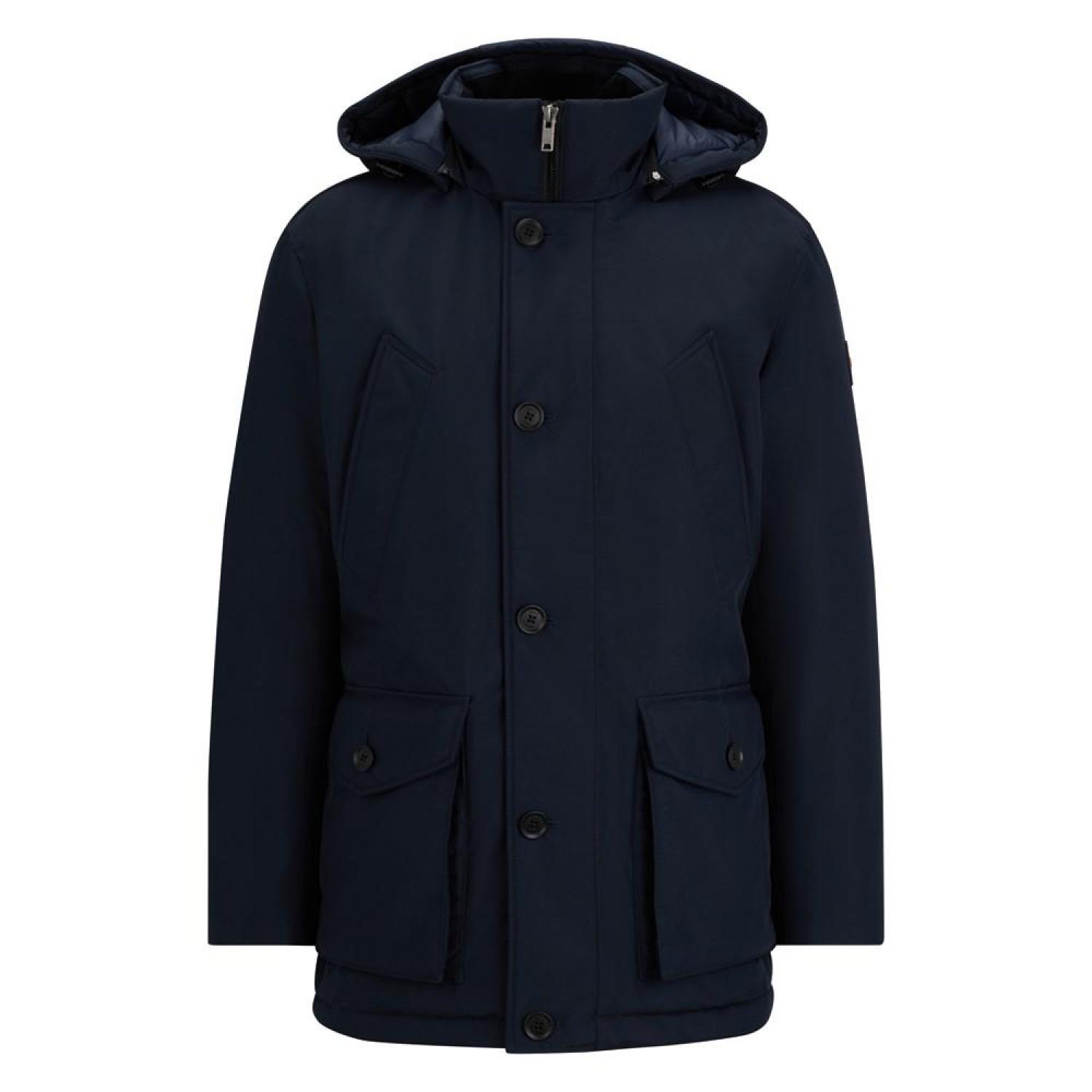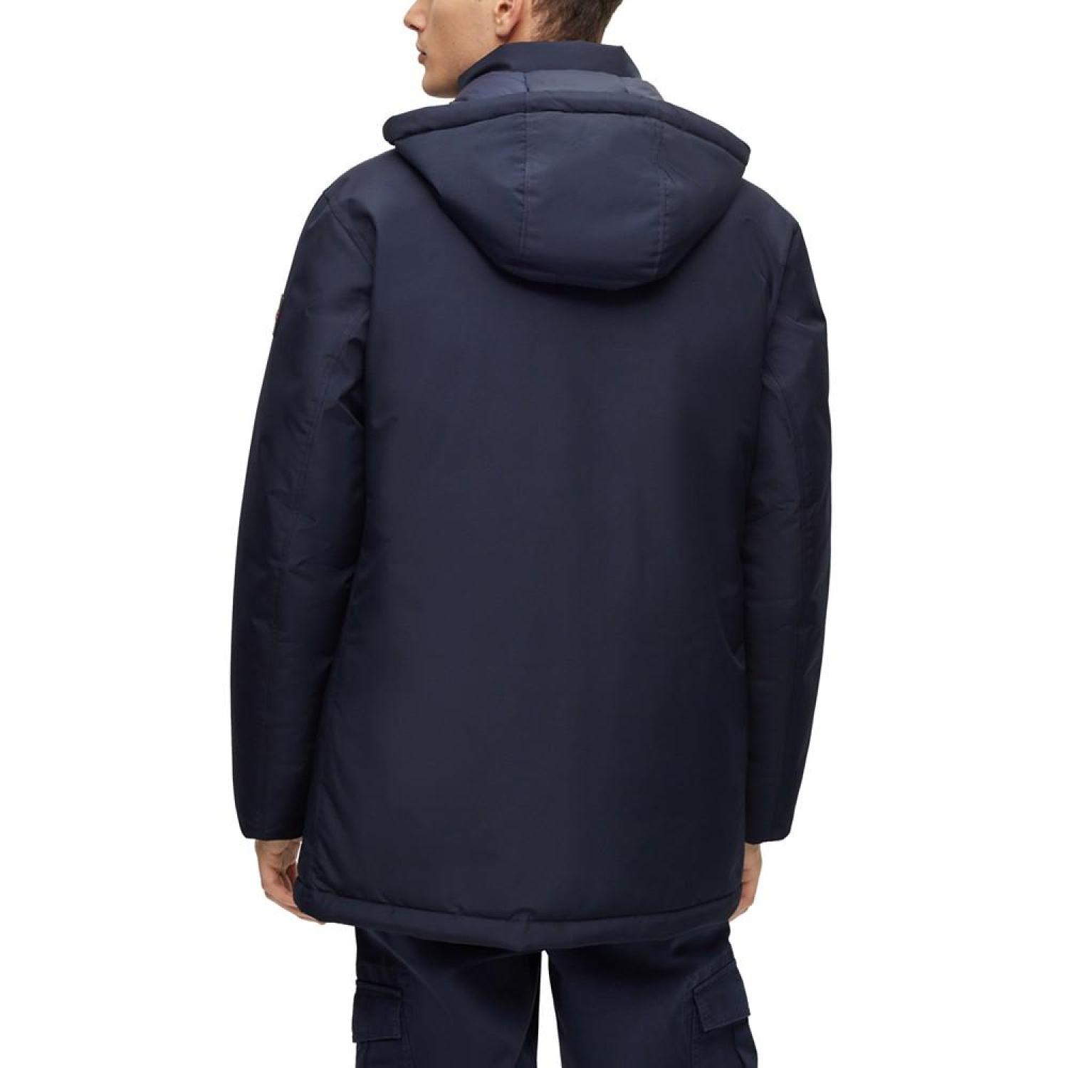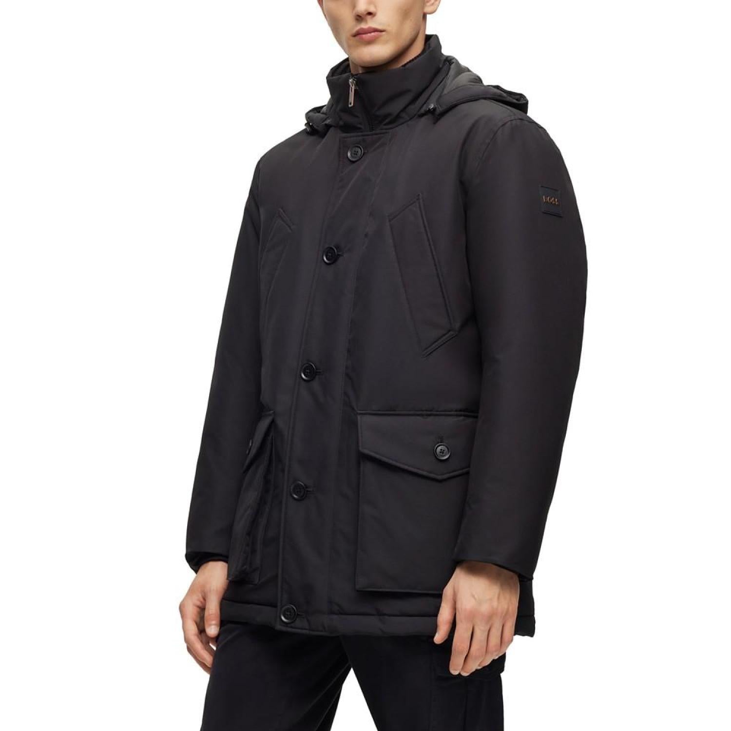 • A hooded parka cut to a relaxed fit in water-repellent micro-textured material with logo trims and cozy pockets by BOSS Menswear.