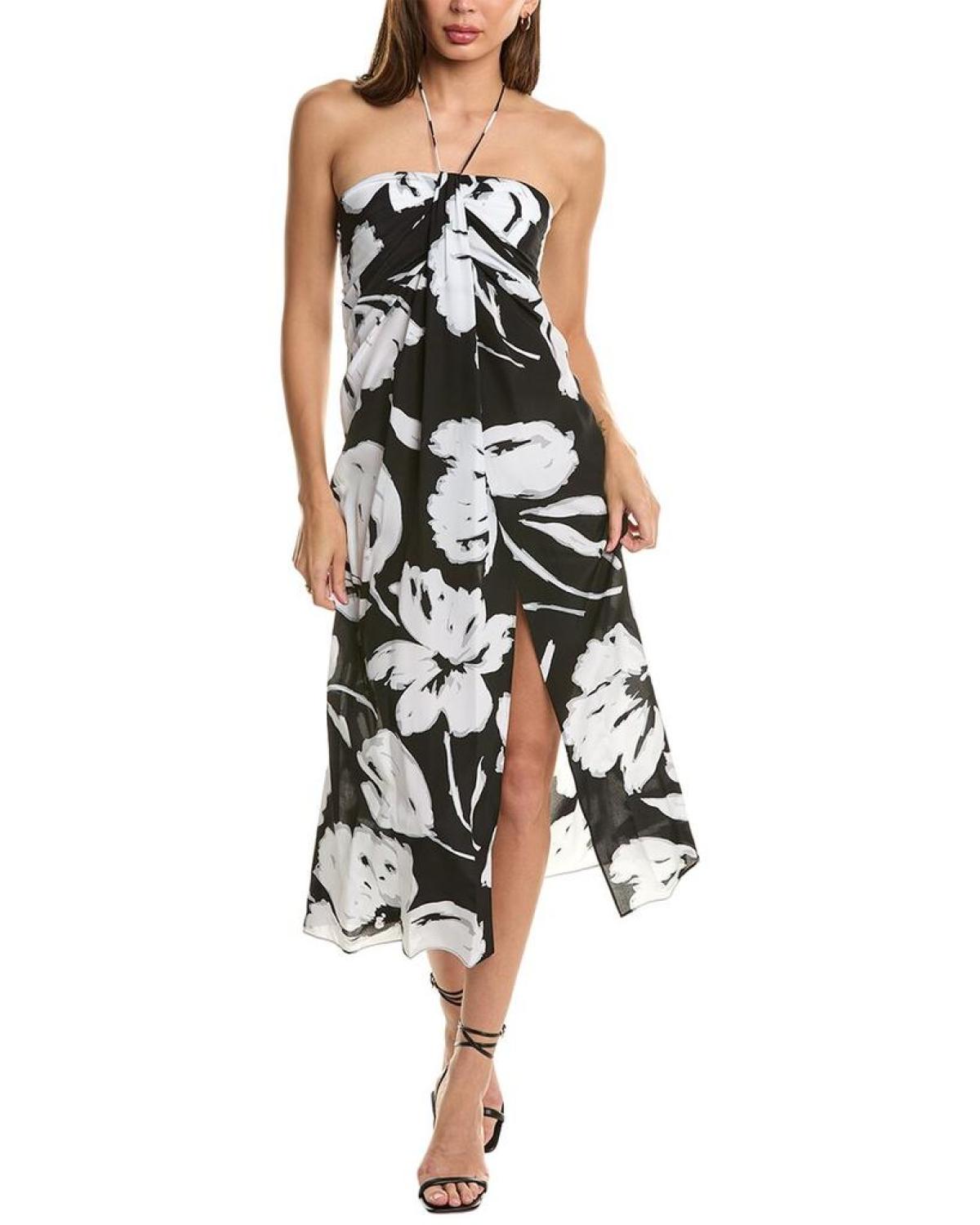 Elevate your wardrobe with the Michael Kors Collection Halter Silk Midi Dress. This stunning dress features a black and white floral print, gathered bust, molded cups, and a stylish slit at the hem. Made from 100% silk shell and lined with 84% nylon and 16% elastane, this dress is both luxurious and comfortable. The midi length adds sophistication, while the center back zipper with hook-and-eye closure allows for ease of wear. Perfect for any special occasion, this dress exudes easy glamour and timeless style. Dry clean only. Made in Italy.