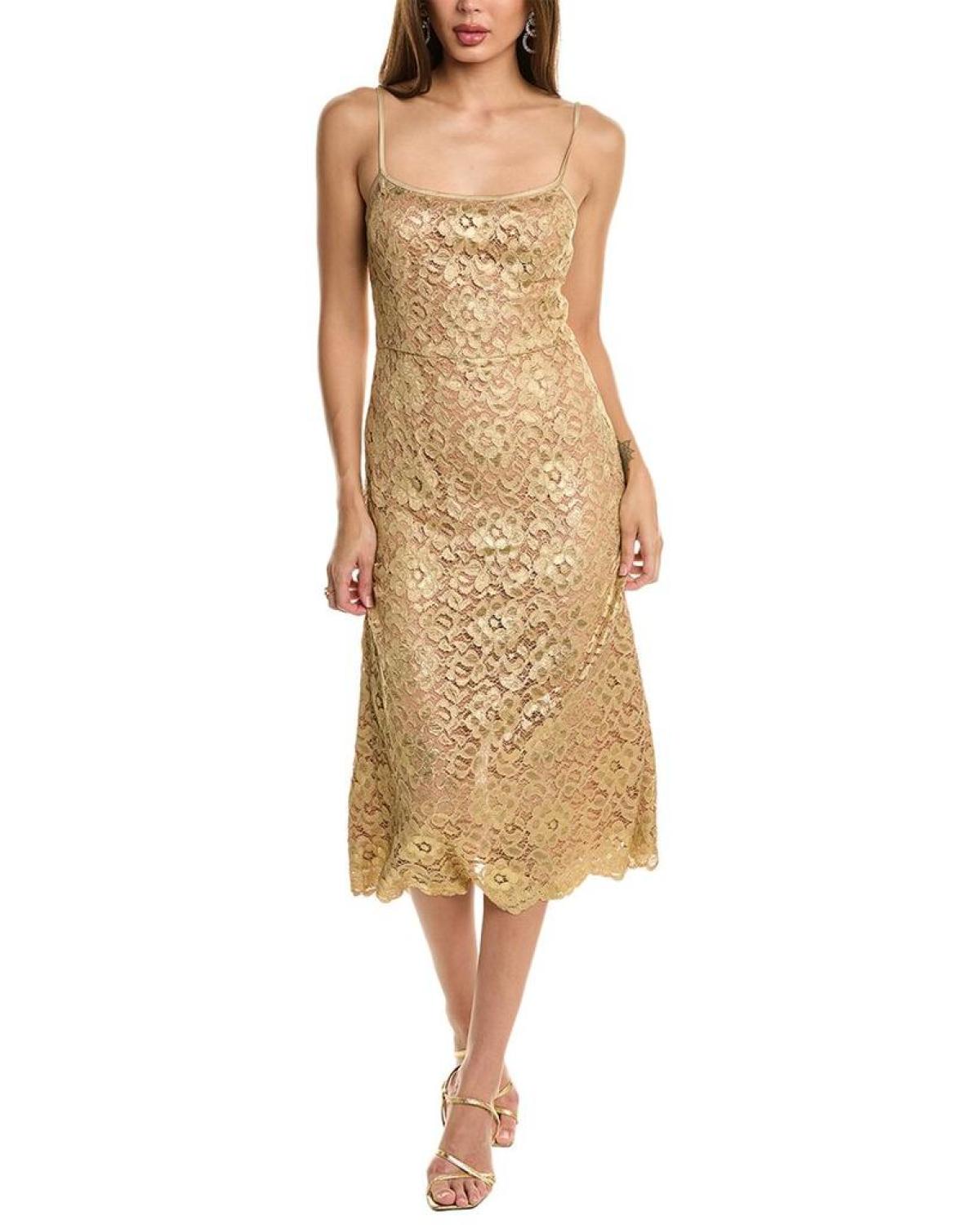 Elevate your wardrobe with the Michael Kors Collection Laminate Lace Silk-Lined Slip Dress. This luxurious dress in gold features a stunning laminate lace design and a sleek silhouette with a slit at the back hem. Made in Italy, this dress is crafted with high-quality materials, including 80% viscose and 20% nylon for the shell and 100% silk for the lining. The dress measures approximately 48.5 inches from shoulder to hem and is finished with a center back zipper with hook-and-eye closure. Perfect for special occasions or elegant nights out, this dress embodies the All-American style for easy glamour and luxurious living that Michael Kors Collection is known for. Dry clean only.