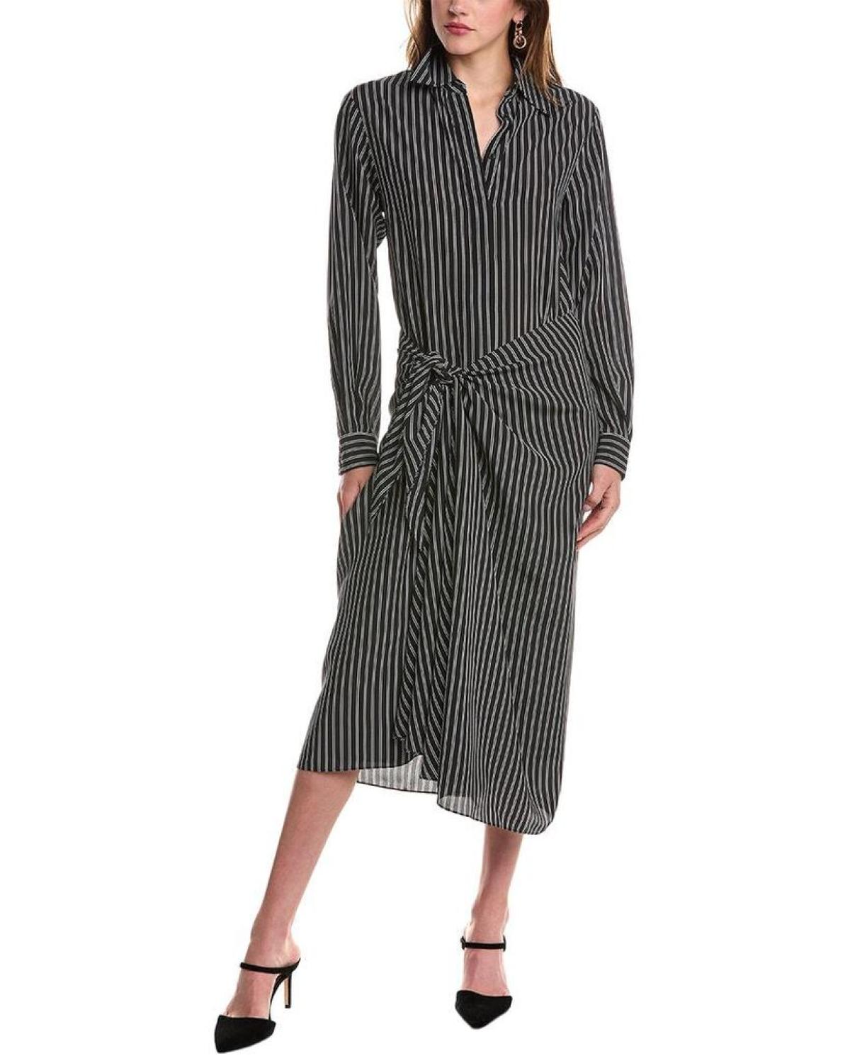 Michael Kors Collection Stripe Sarong Tie Silk Shirtdress