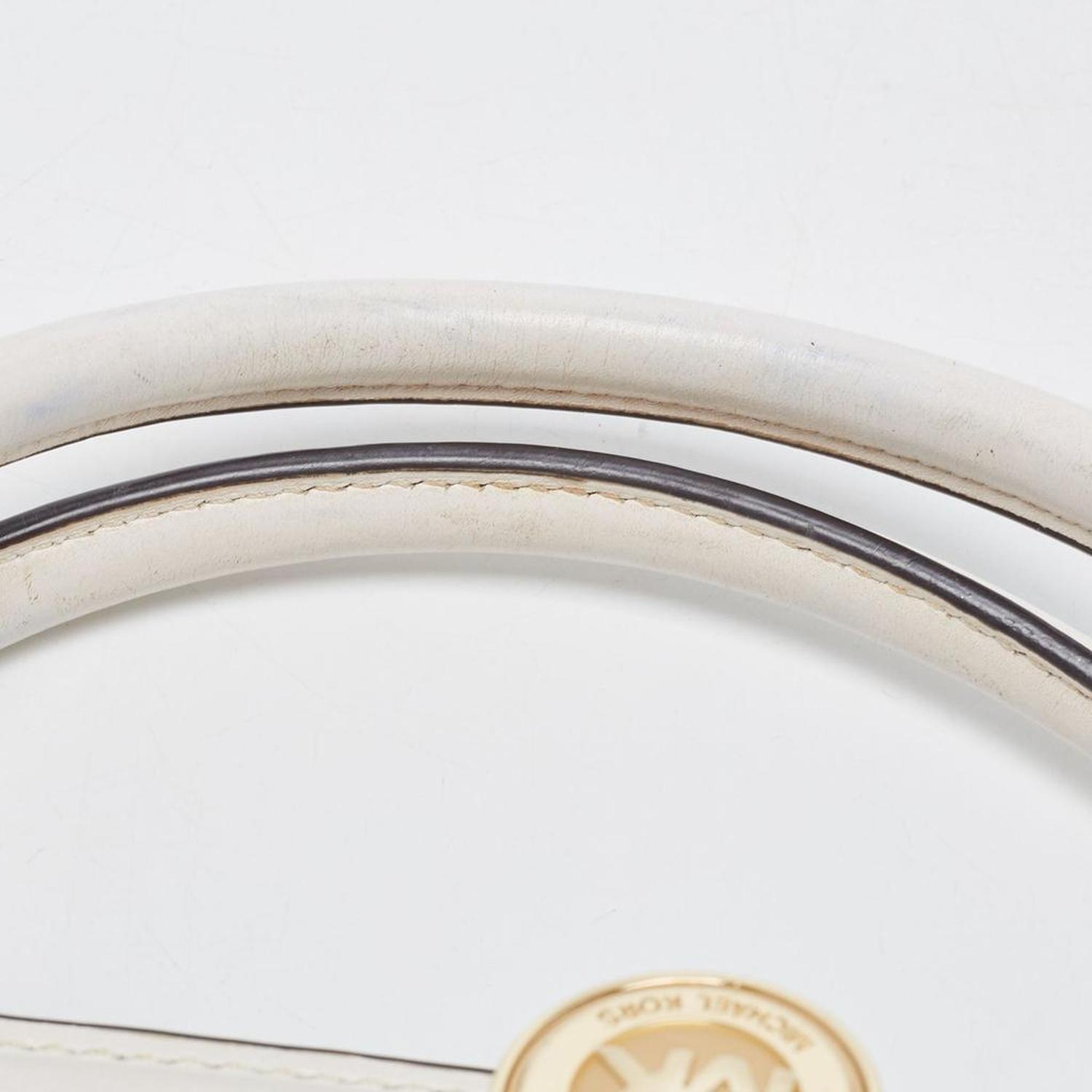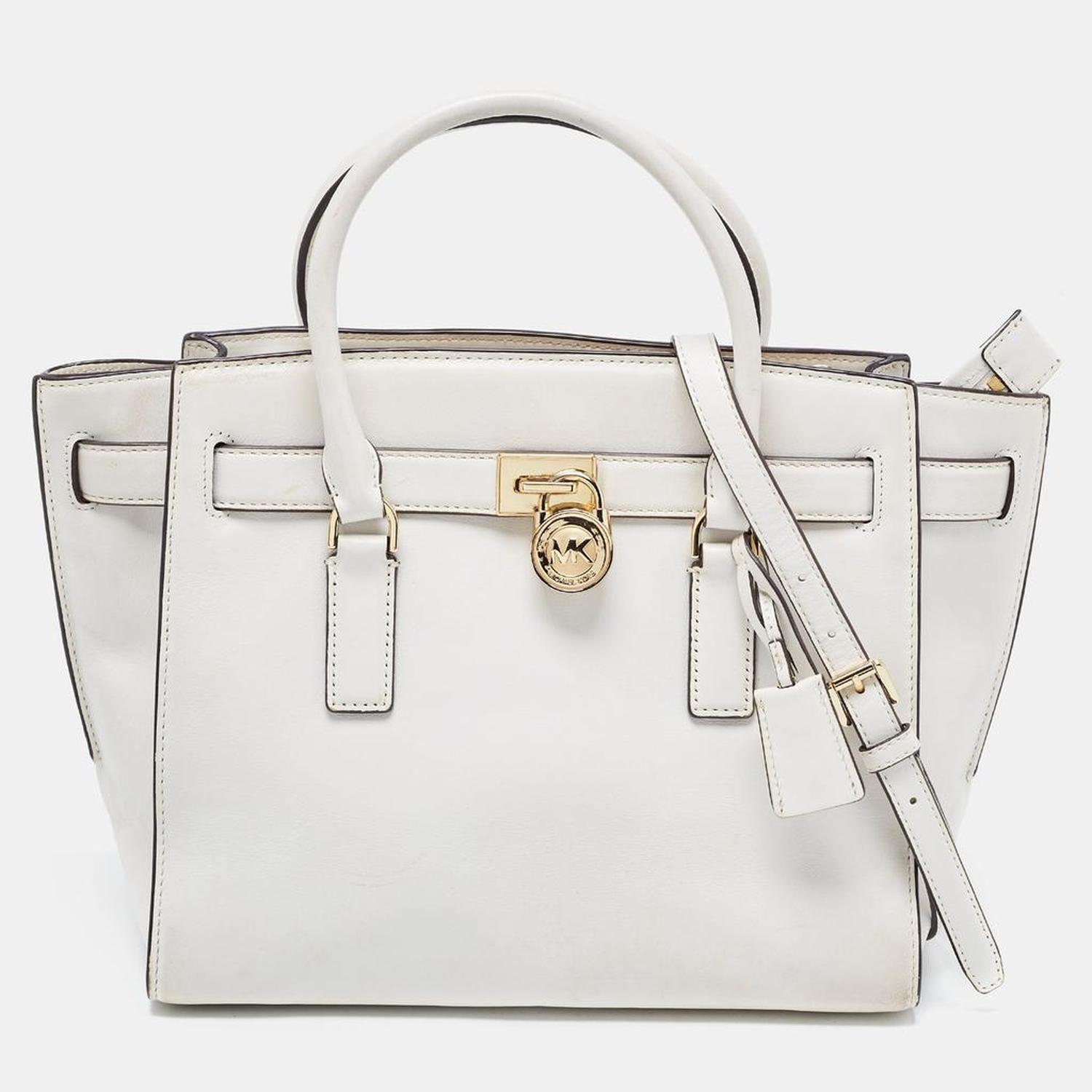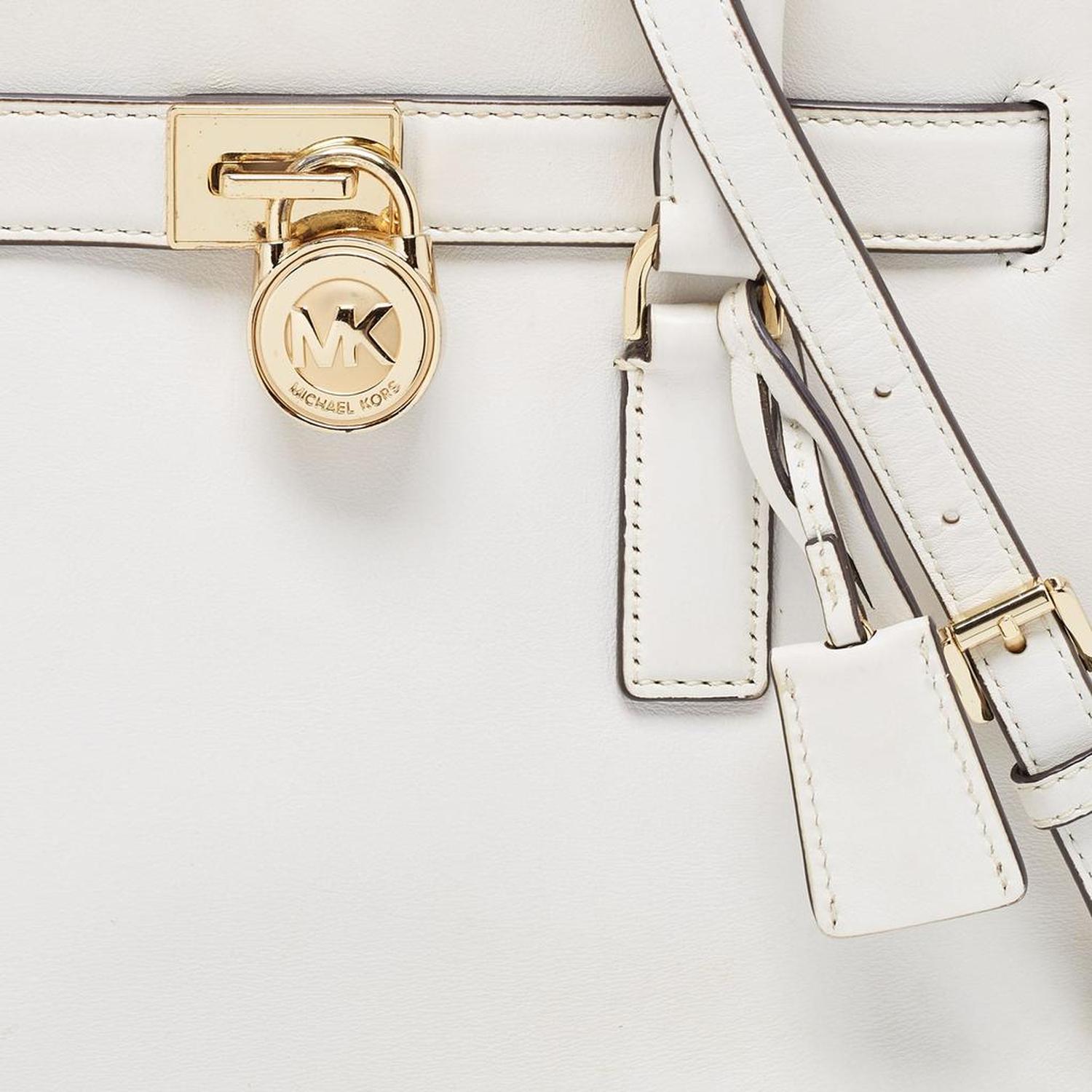 • This Hamilton East West tote is a loved bag from MICHAEL Michael Kors. It is crafted from leather in a white shade and decorated with a signature padlock on the front. The bag has two handles a shoulder strap and a spacious fabric interior. This creation is ideal for everyday use.