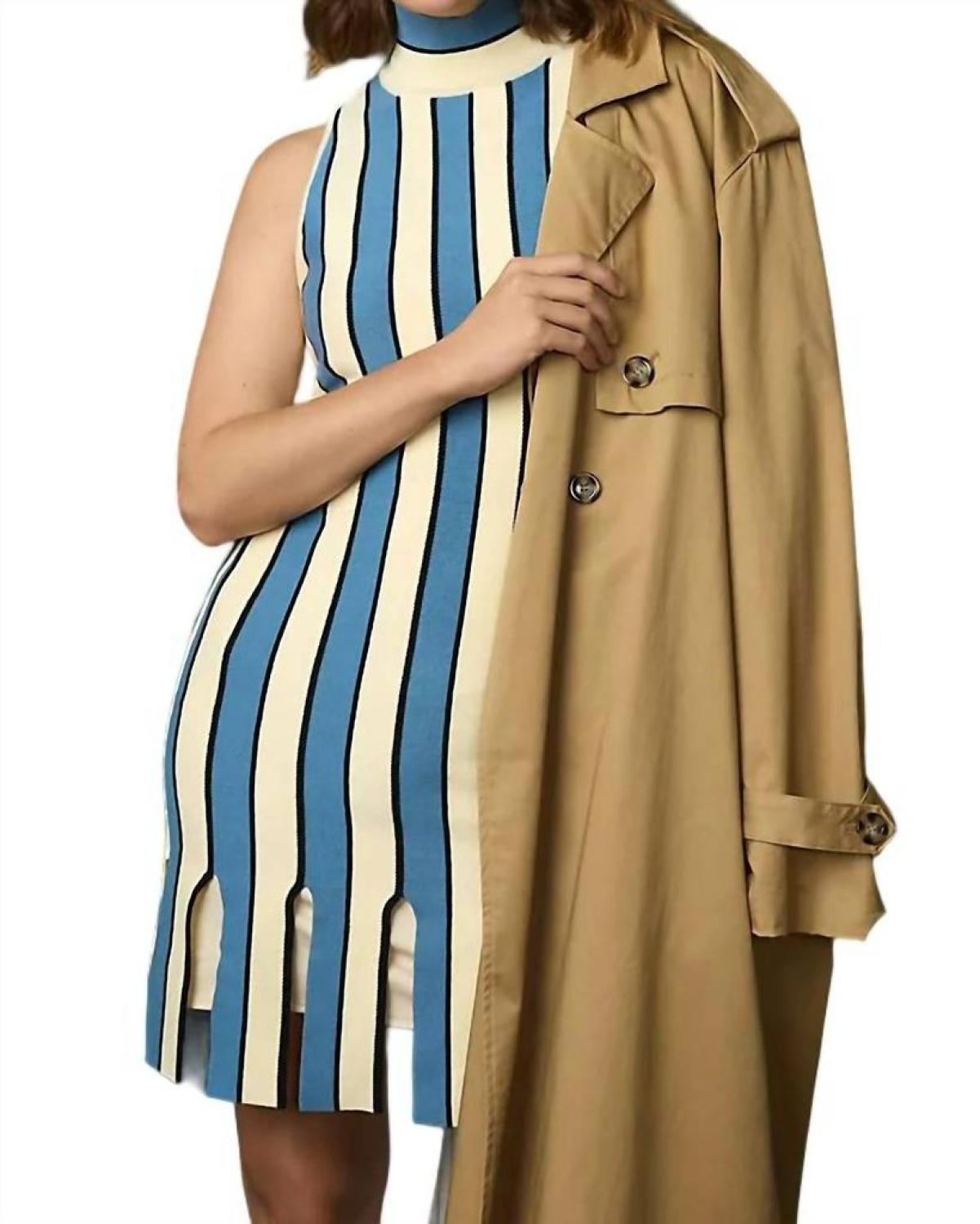 The kind of easy and flattering dress you'll be reaching for all season long.100% Cotton. Button back. Mini silhouette. Mockneck. Sleeveless. Stripe. Hand wash. Imported. 35" L.