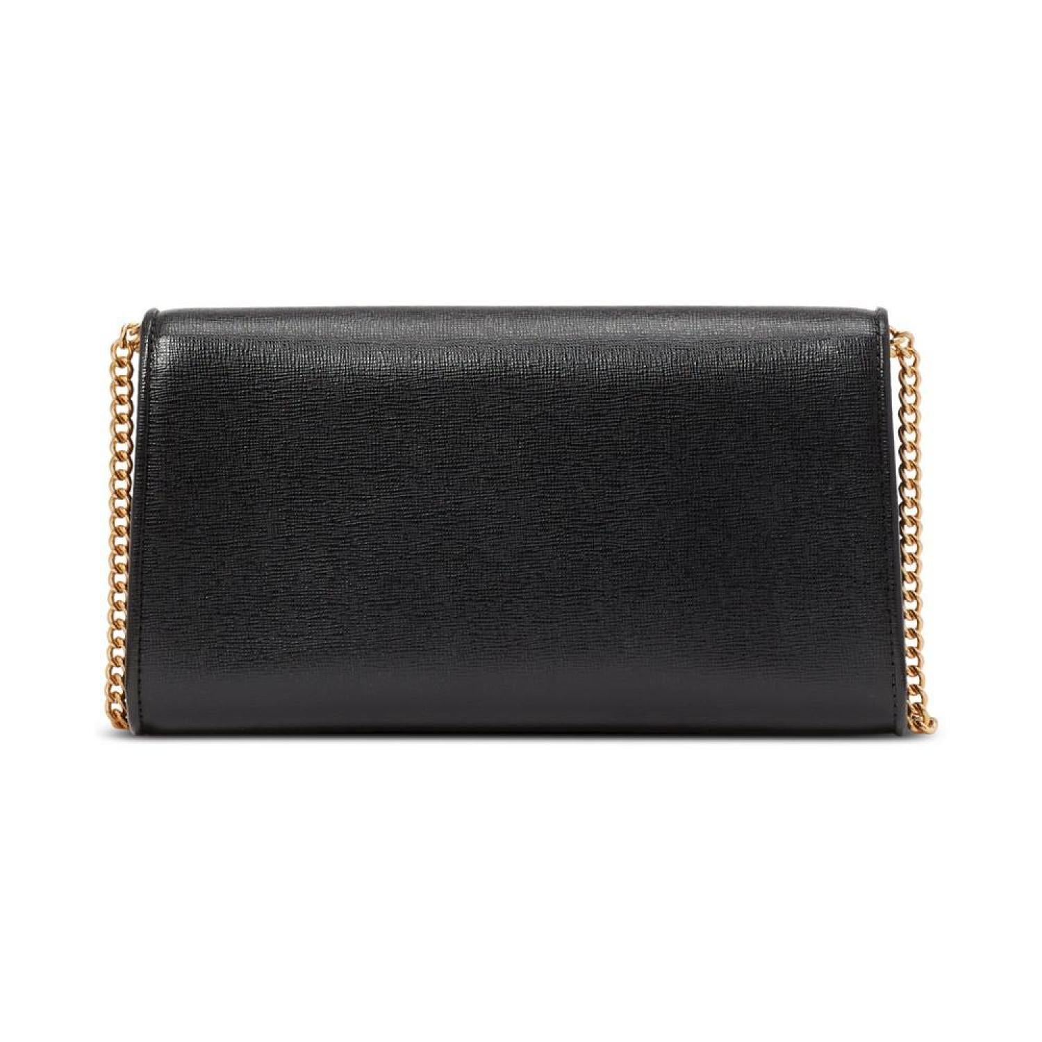 Gold-tone hardware, bow embellishment & logo, interior card slots