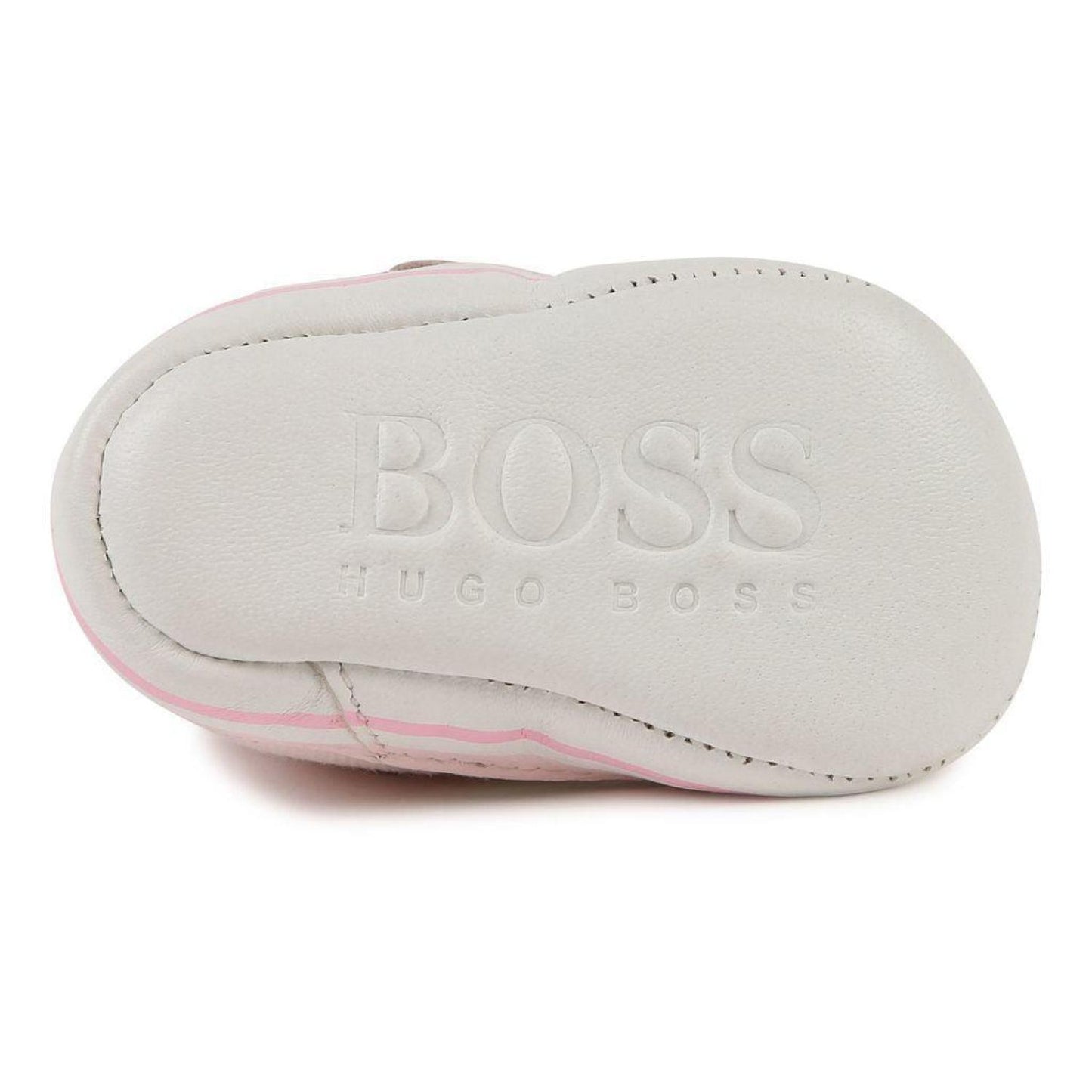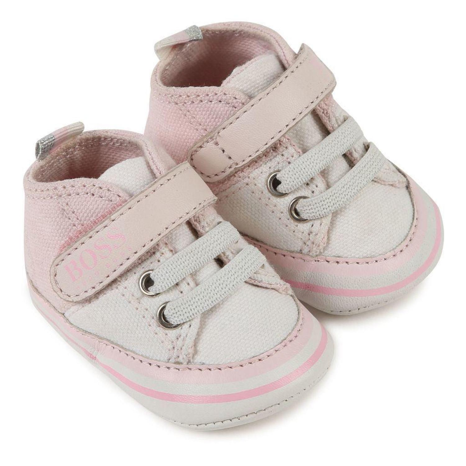 • Pink and white canvas sneakers by BOSS with a Velcro strap closure, mock laces and non-slip rubber soles. 50% textile, leather 50% Wipe Gently Made in China SKU - J99068-44L