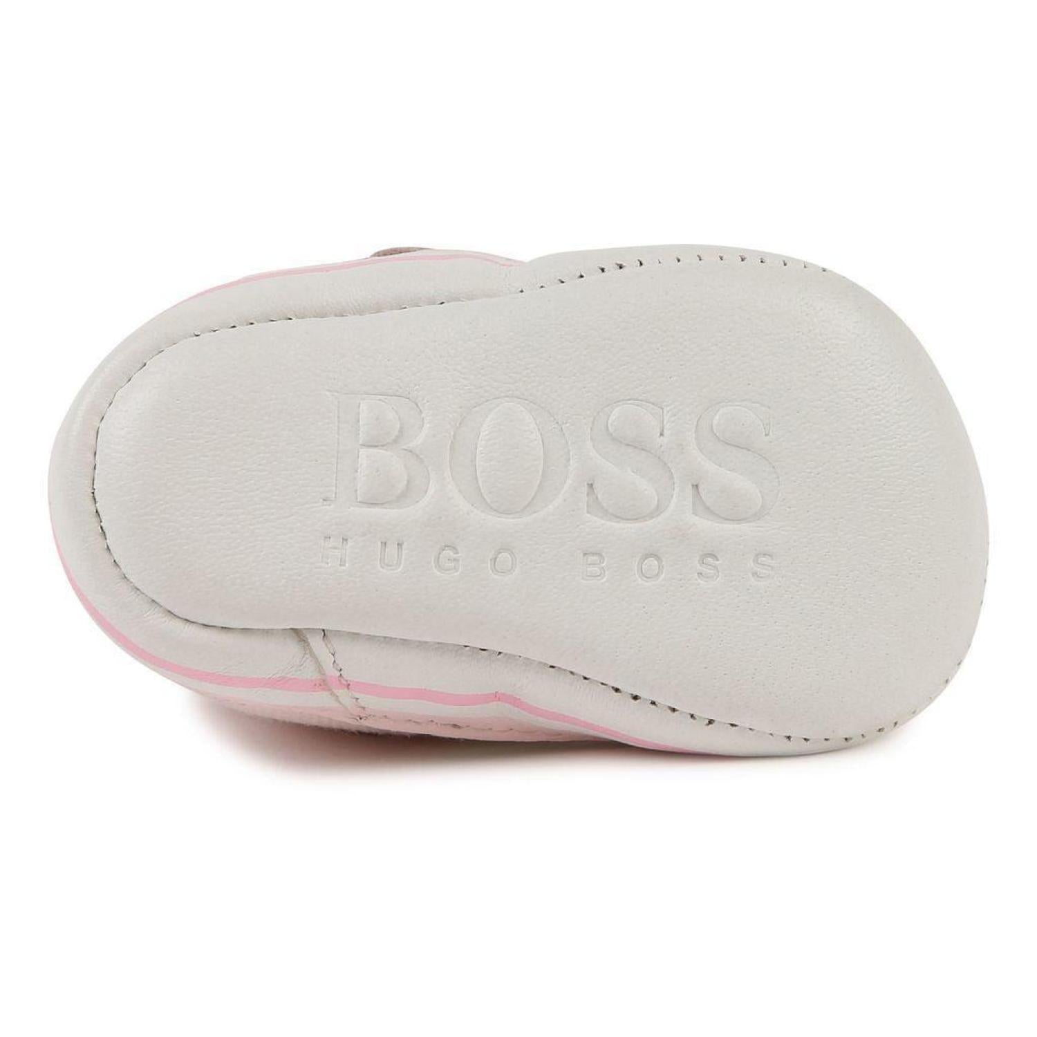 Pink and white canvas sneakers by BOSS with a Velcro strap closure, mock laces and non-slip rubber soles. 50% textile, leather 50% Wipe Gently Made in China SKU - J99068-44L