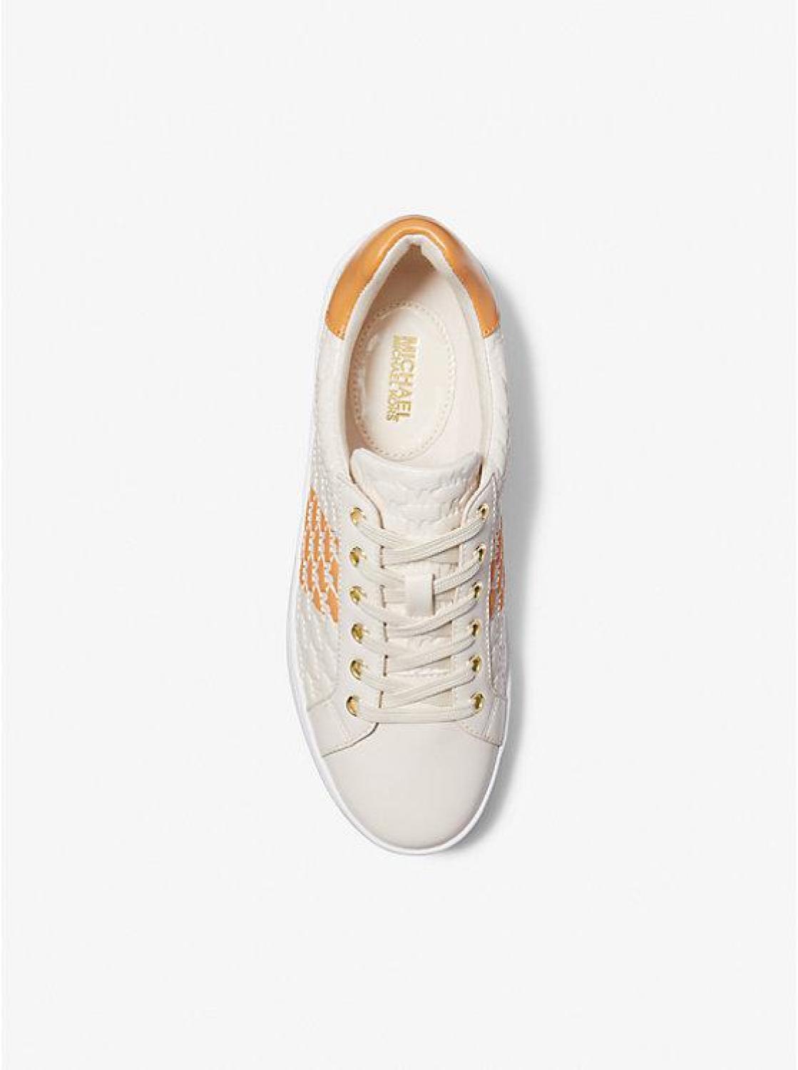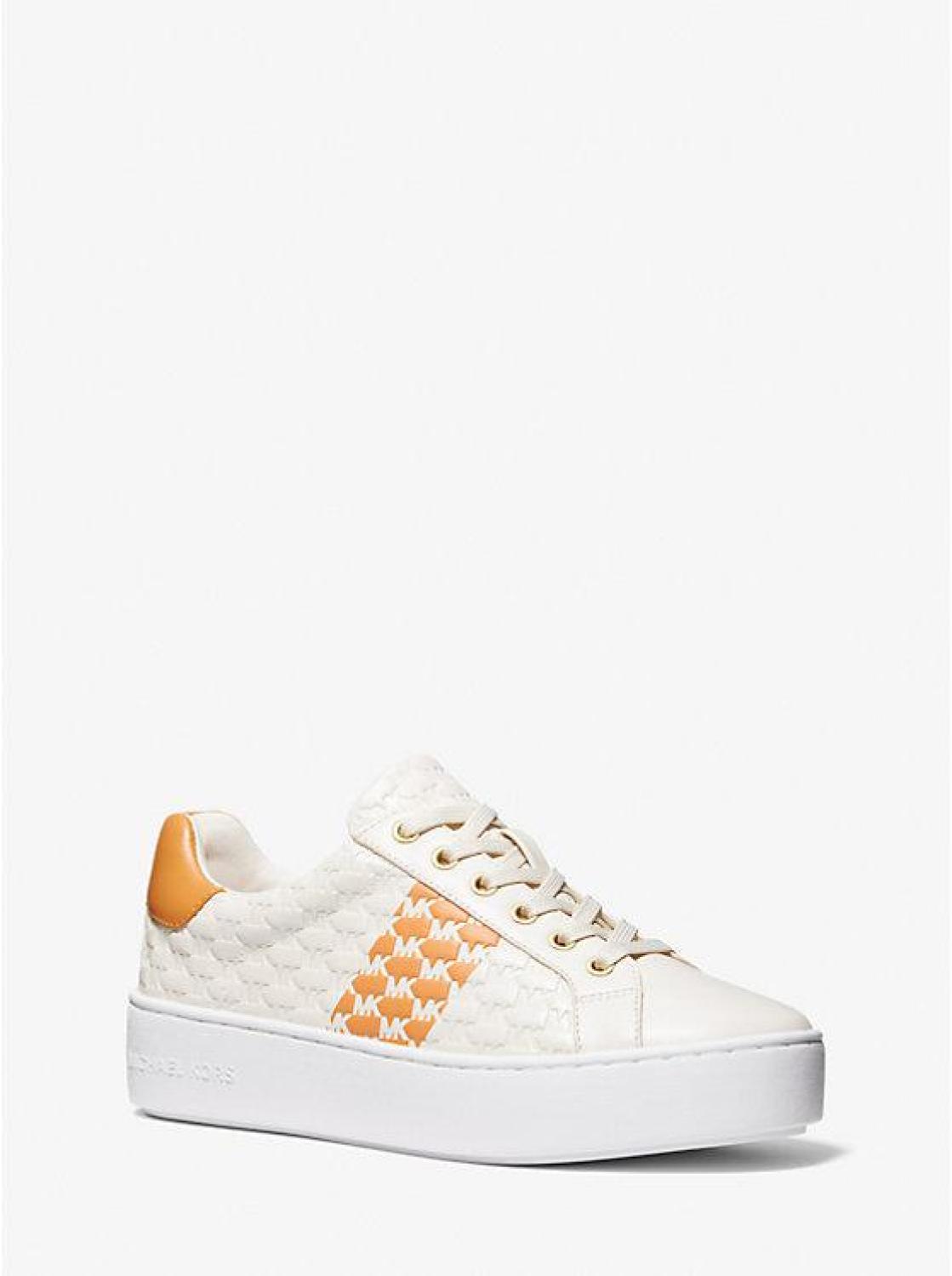 • The Poppy sneaker will add a touch of sporty glamour to almost any look. Embossed with our initials and featuring a bold stripe, this sleek pair is a worthy addition to your wardrobe.