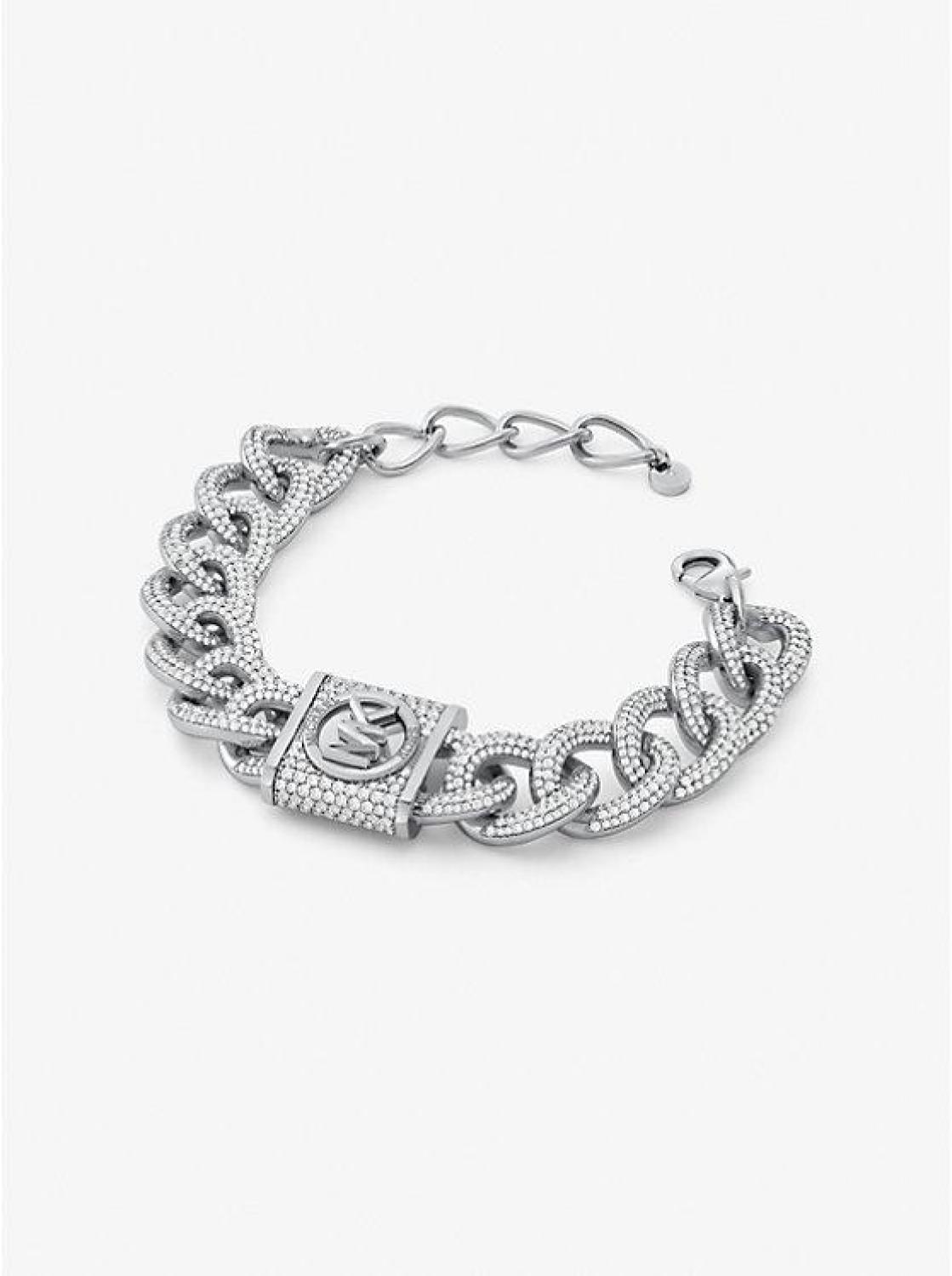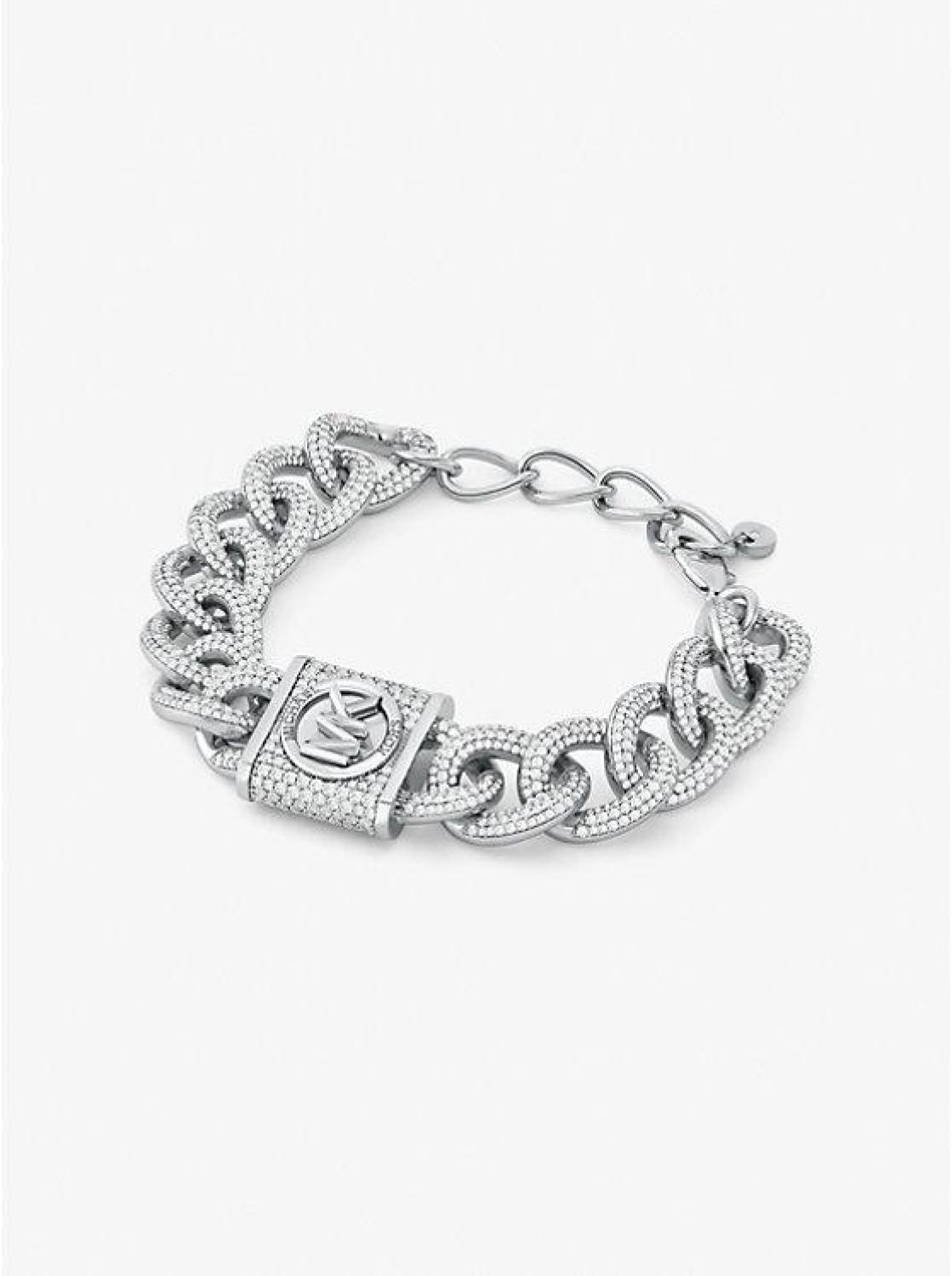 This platinum-plated brass bracelet is made up of interlocking chain links and a padlock charm studded with pavé accents. Match this eye-catching accessory back to one of our Hamilton bags or shoes for a tough-luxe statement. • Bracelet • Brass • Platinum plating • Cubic zirconia • 0.78”W • Clasp fastening • Imported • Michael Kors jewelry is made of precious metals combined with various elements including semi-precious stones. Apply perfume and cosmetics prior to putting on your jewelry. To clean your jewelry, wipe with the soft buffing cloth provided. Keep your jewelry away from moisture as it promotes tarnish. We recommend storing your jewelry in a clean, dry place, such as the pouch that the product comes in. • Bracelet • Brass • Platinum plating • Cubic zirconia • 0.78”W • Clasp fastening • Imported • Michael Kors jewelry is made of precious metals combined with various elements including semi-precious stones. Apply perfume and cosmetics prior to putting on your jewelry. To clean your jewelry, wipe with the soft buffing cloth provided. Keep your jewelry away from moisture as it promotes tarnish. We recommend storing your jewelry in a clean, dry place, such as the pouch that the product comes in.