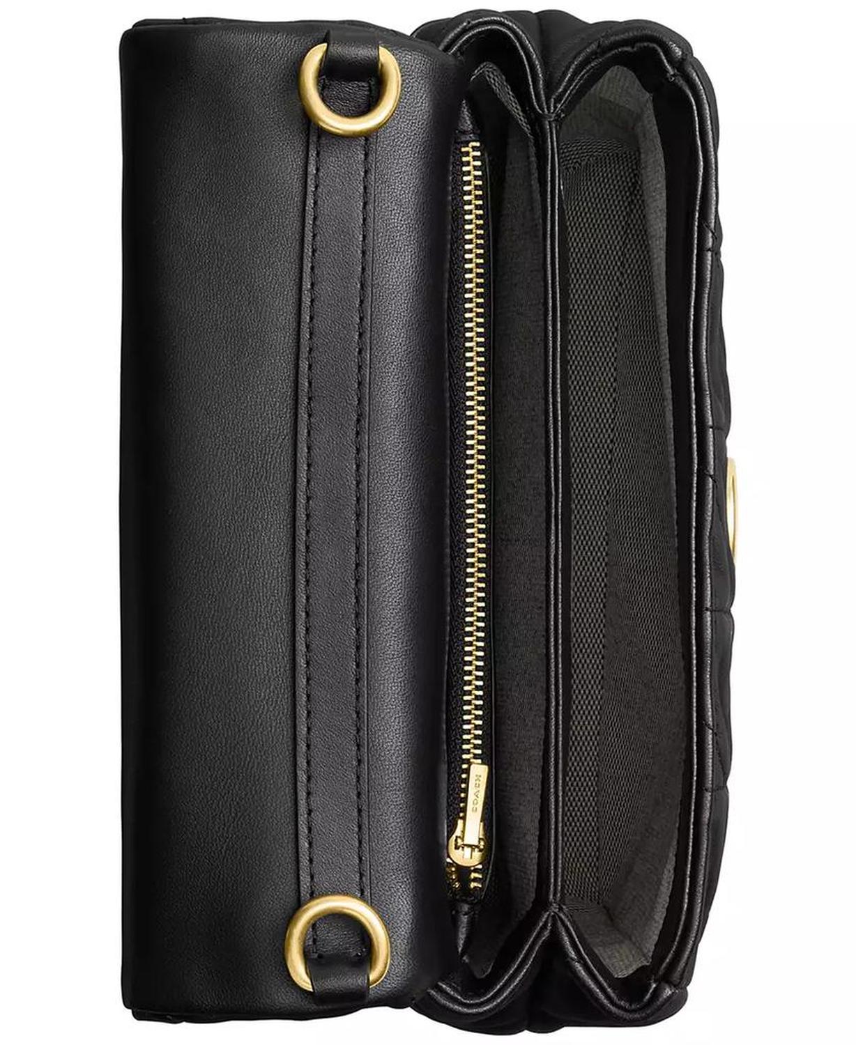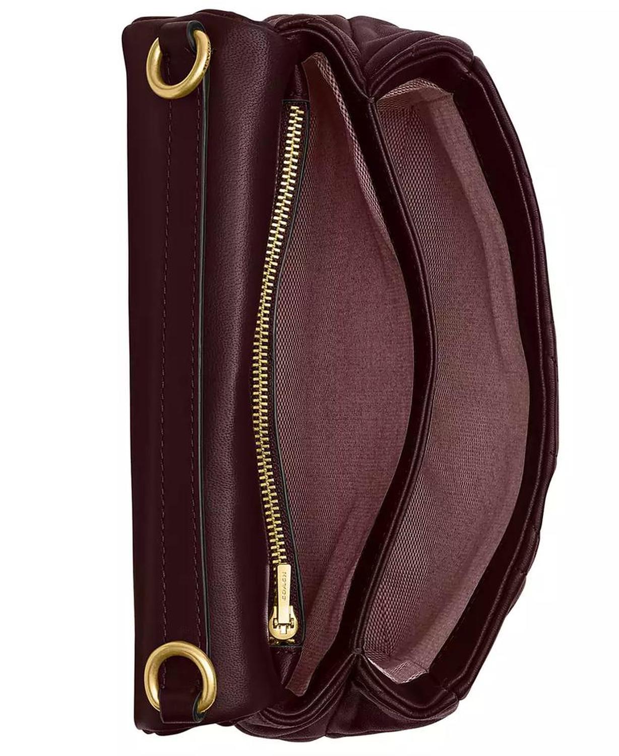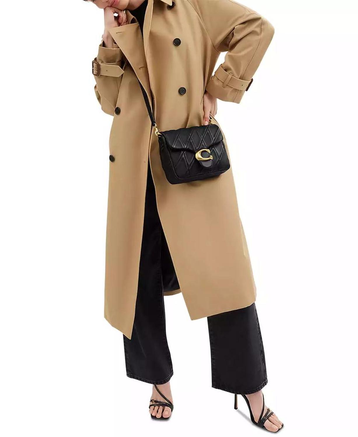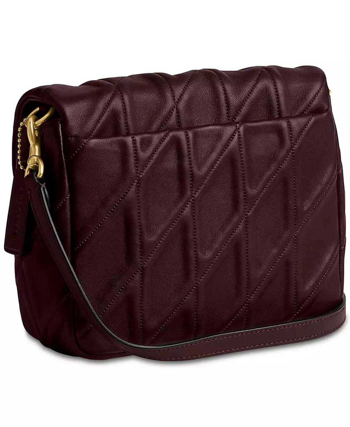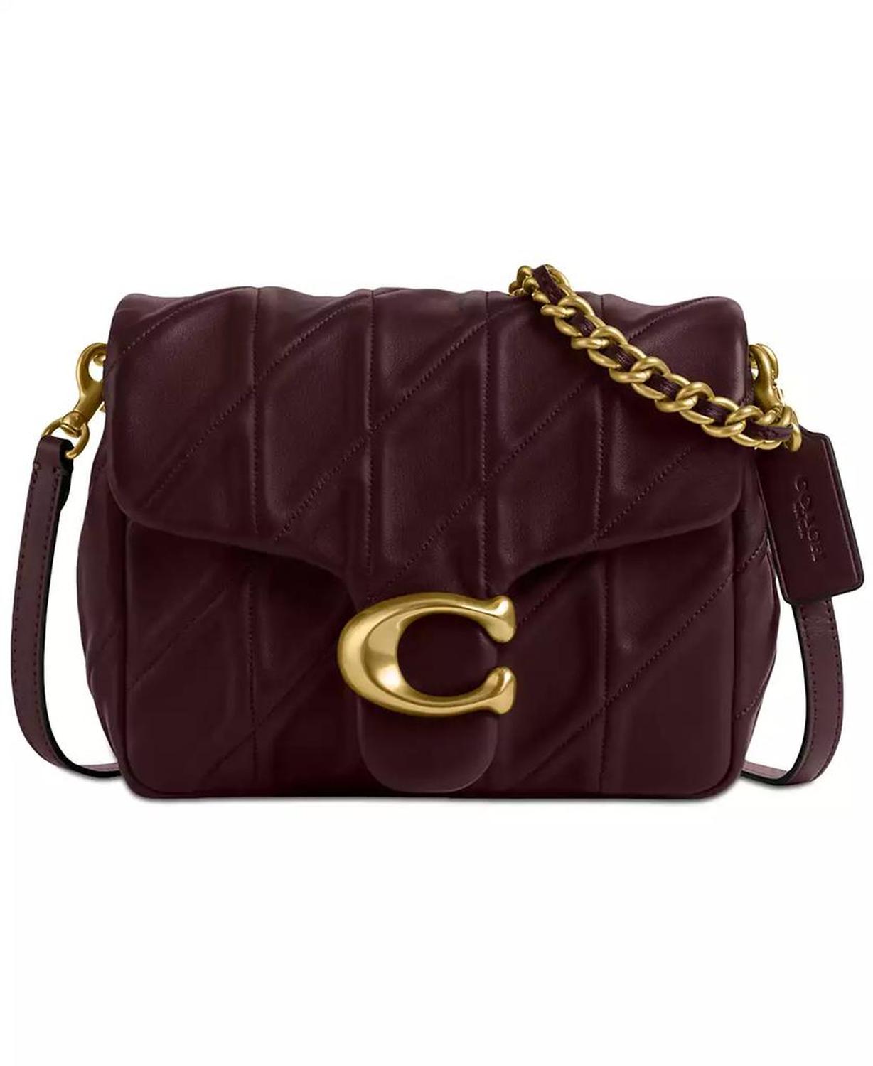 Super chic with quilted leather and gold-tone accents, this shoulder bag by COACH is a real showstopper. Mini sized bag; 7-3/4"W x 6-3/4"H x 2-1/2"D (width is measured across the bottom of handbag) Silhouette is based off 5'9" model 10-1/2"L removable short strap; 21-1/2"L removable long strap Snap closure Gold-tone hardware & logo; exterior back snap pocket; interior zip & multifunction pockets Leather Professional leather clean Imported