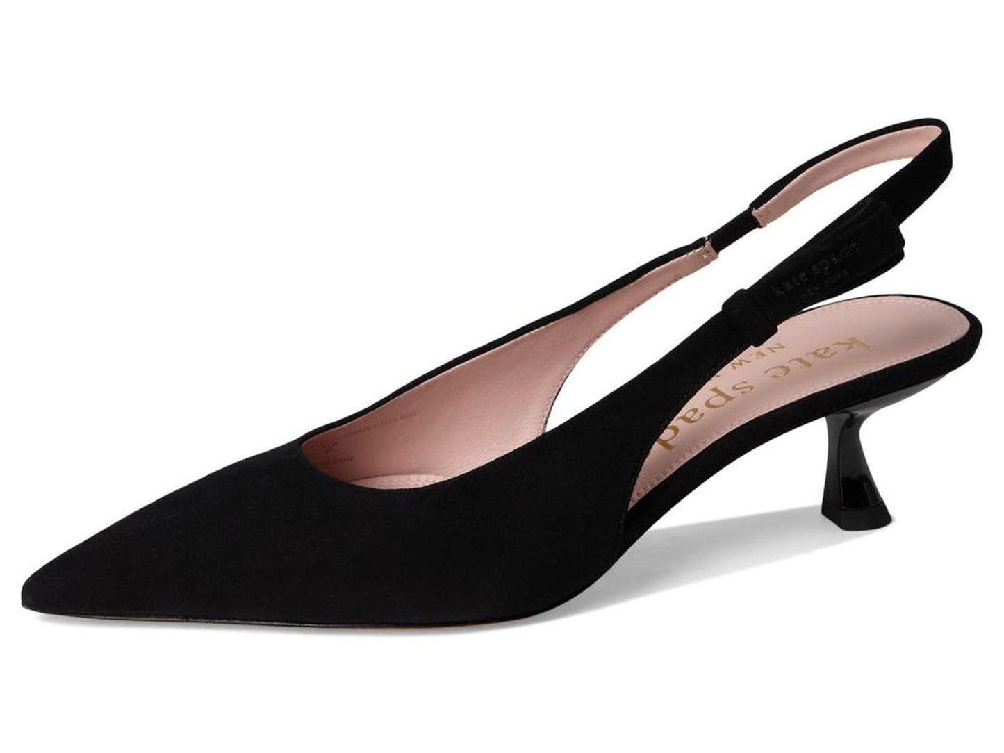 • Put your best foot forward choosing the Kate Spade New York® Riley Slingback Kitten Heels. Featuring glossy patent leather upper, leather lining, and insole, these heels offer both style and comfort. The pointed toes and buckle closure add a touch of refinement to any outfit. Elevate your look with these chic and versatile heels.