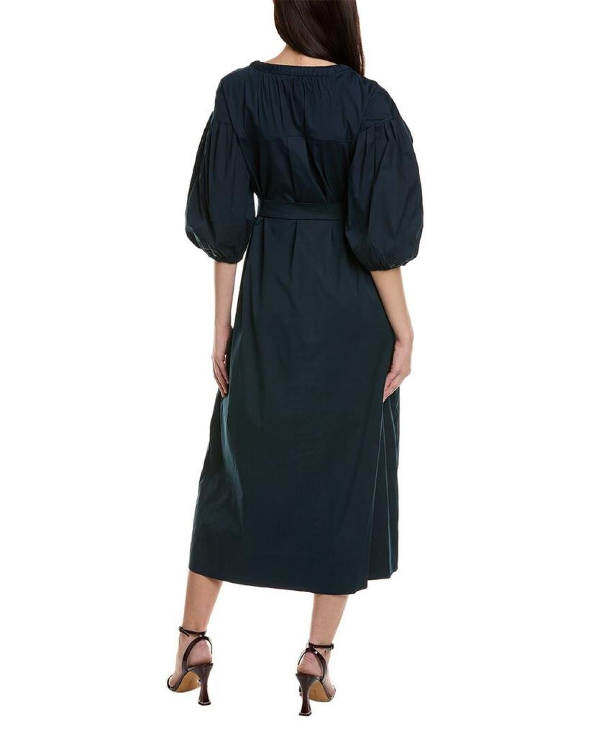 Elevate your wardrobe with the Max Mara S Max Mara Canto Midi Dress. This stunning navy dress features gathered drawstring neckline, balloon sleeves, tie sash at waist, and convenient side seam pockets. The button front adds a touch of sophistication, while the 80% cotton, 18% nylon, 2% elastane fabric blend ensures comfort and durability. Machine washable and imported, this dress is approximately 51 inches from shoulder to hem and is available in various sizes. Make a fashionable statement with this chic and versatile piece from Max Mara.