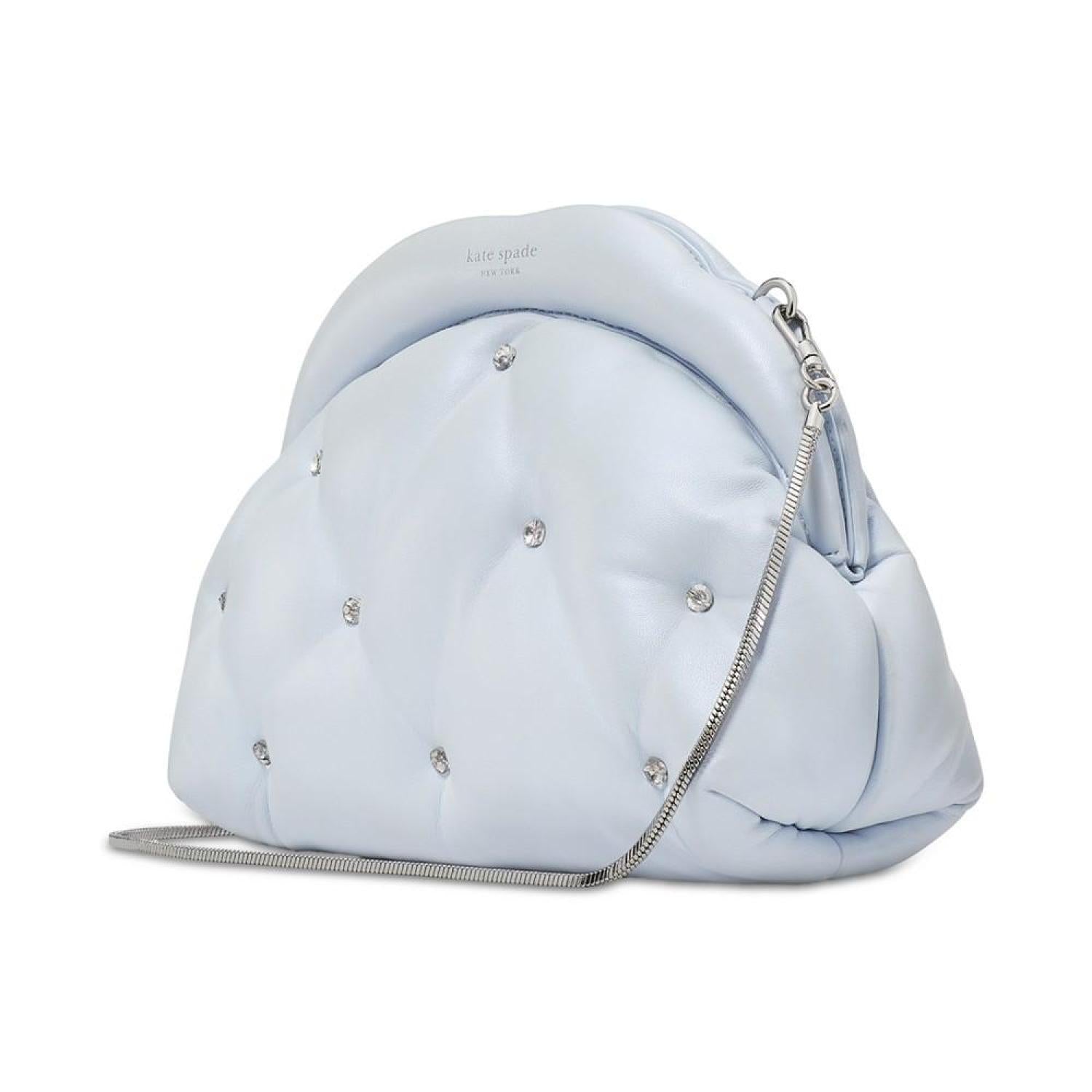 Luxurious and plush to the touch, this Shade Pearlized Smooth Leather Cloud Clutch by kate spade new york will have you on cloud nine. 11-4/5"W x 9"H x 4-3/4"D Removable chain strap Magnetic snap closure Silver-tone hardware Interior zip & slip pockets Leather Spot clean Imported