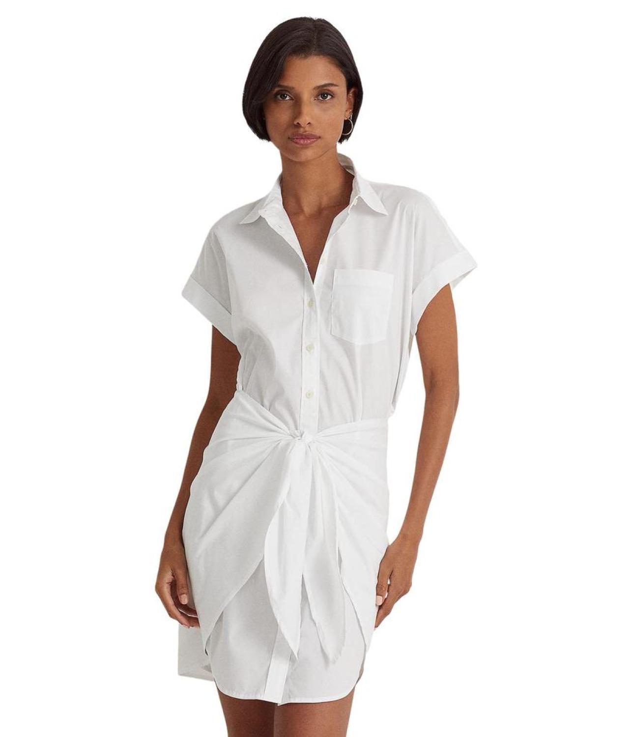 • Offering a sleek look, the LAUREN Ralph Lauren® Tie Front Stretch-Cotton Blend Shirtdress amps up your casual appeal.