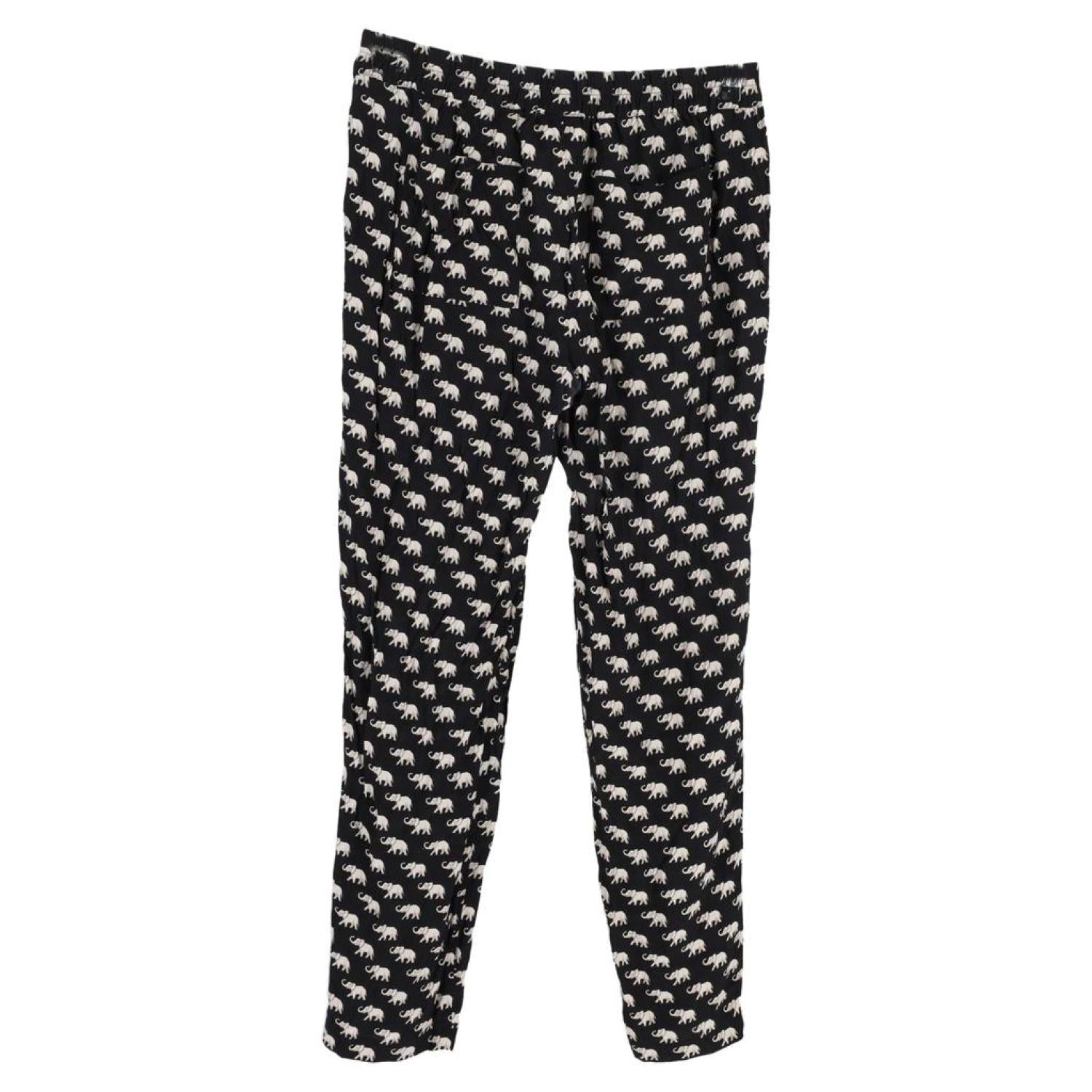 Weekend Max Mara Elephant Print Straight Leg Pants in Black Silk