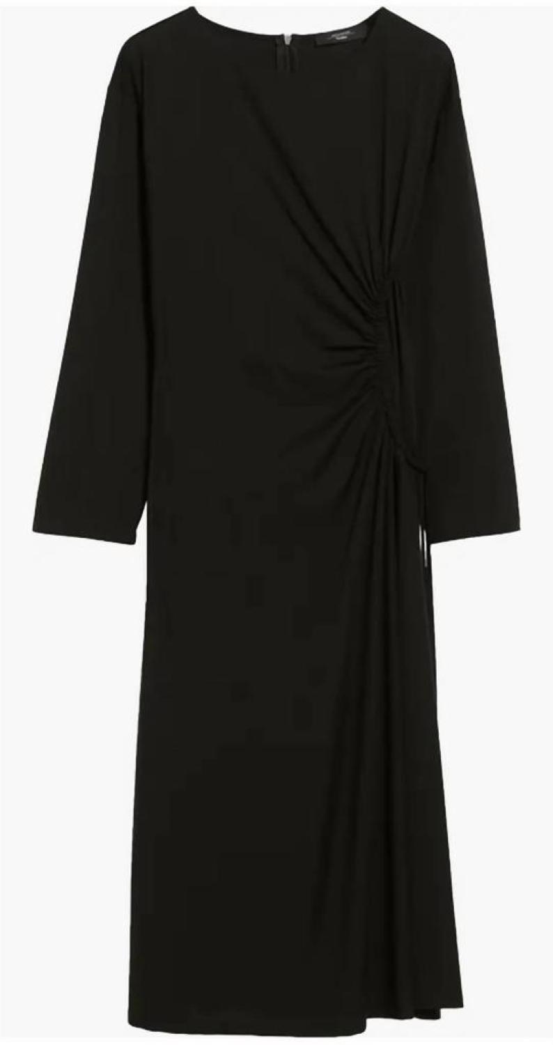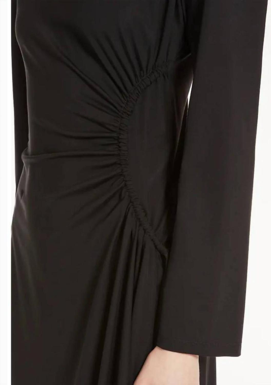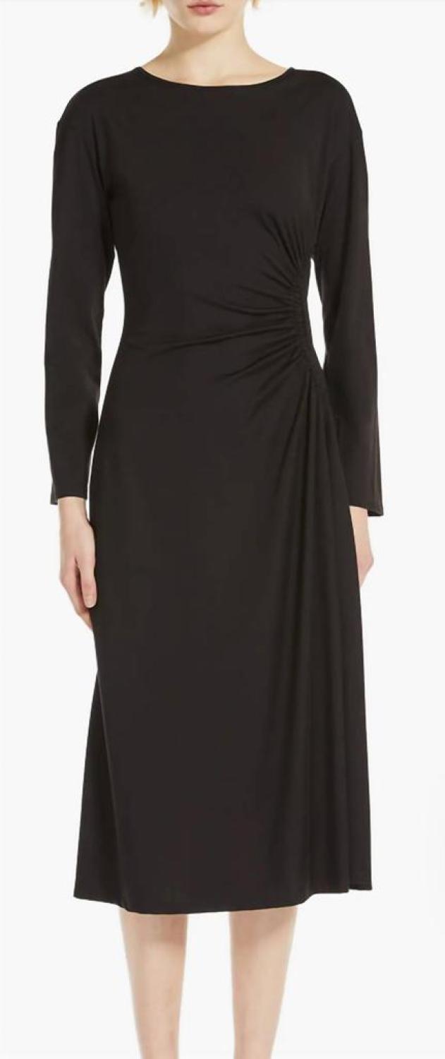 Cute and comfortable, this long sleeve dress has it all.Elegance and ease collide in this fluid jersey midi dress with an artfully ruched panel that accentuates your shape.Hidden back-zip closureJewel neckLong sleeves35% polyamide, 27% lyocell, 27% viscose, 11% elastaneDry clean or machine wash, dry flatImported