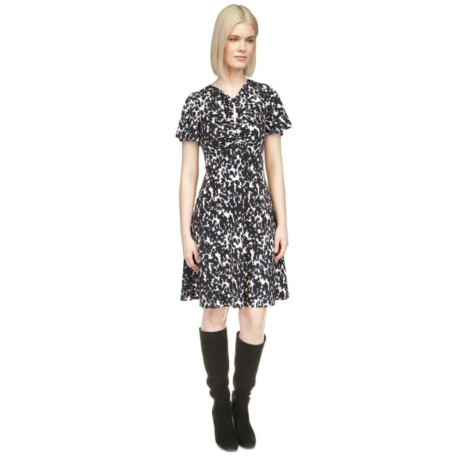 Land a fierce look with this flutter-sleeve dress from MICHAEL Michael Kors, featuring a keyhole neckline.