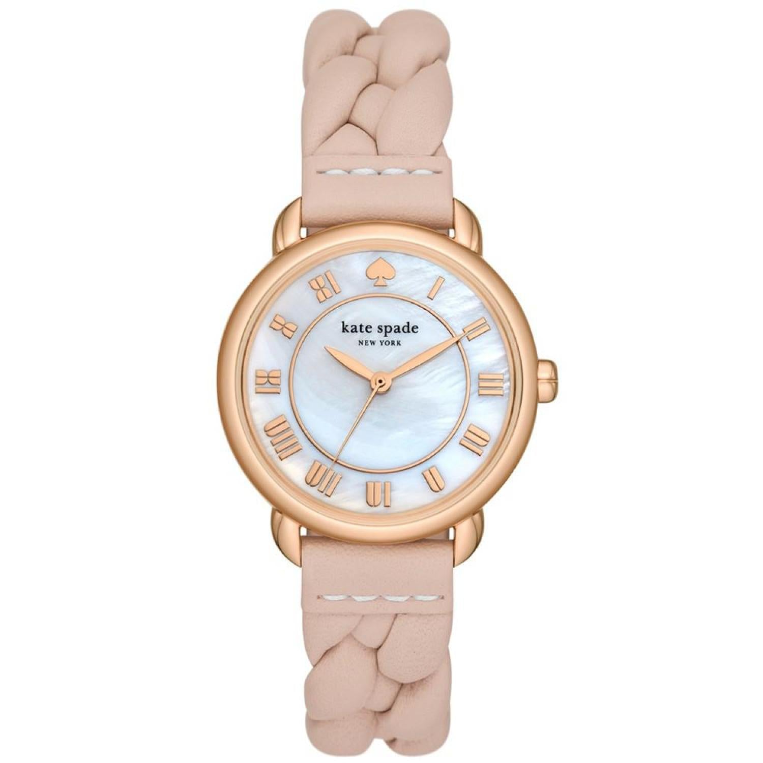Introducing our Lily Avenue watch, a polished staple that instantly elevates your wrist game. This style features a braided leather band and mother-of-pearl satin dial. Style #KSW1821.