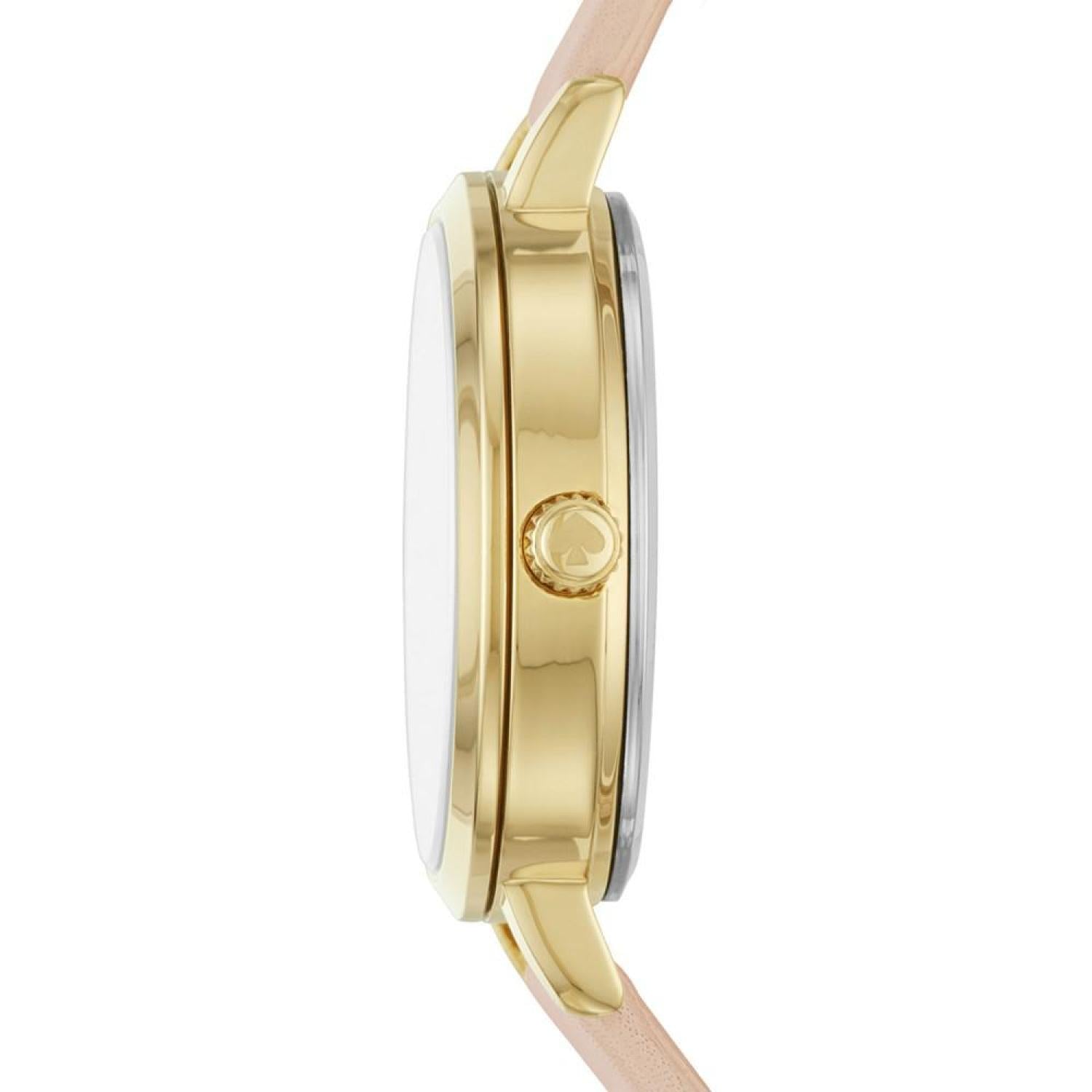 • This metro 30mm watch features a white glossy dial with gold-tone stick indexes, three-hand movement and blush leather strap.
