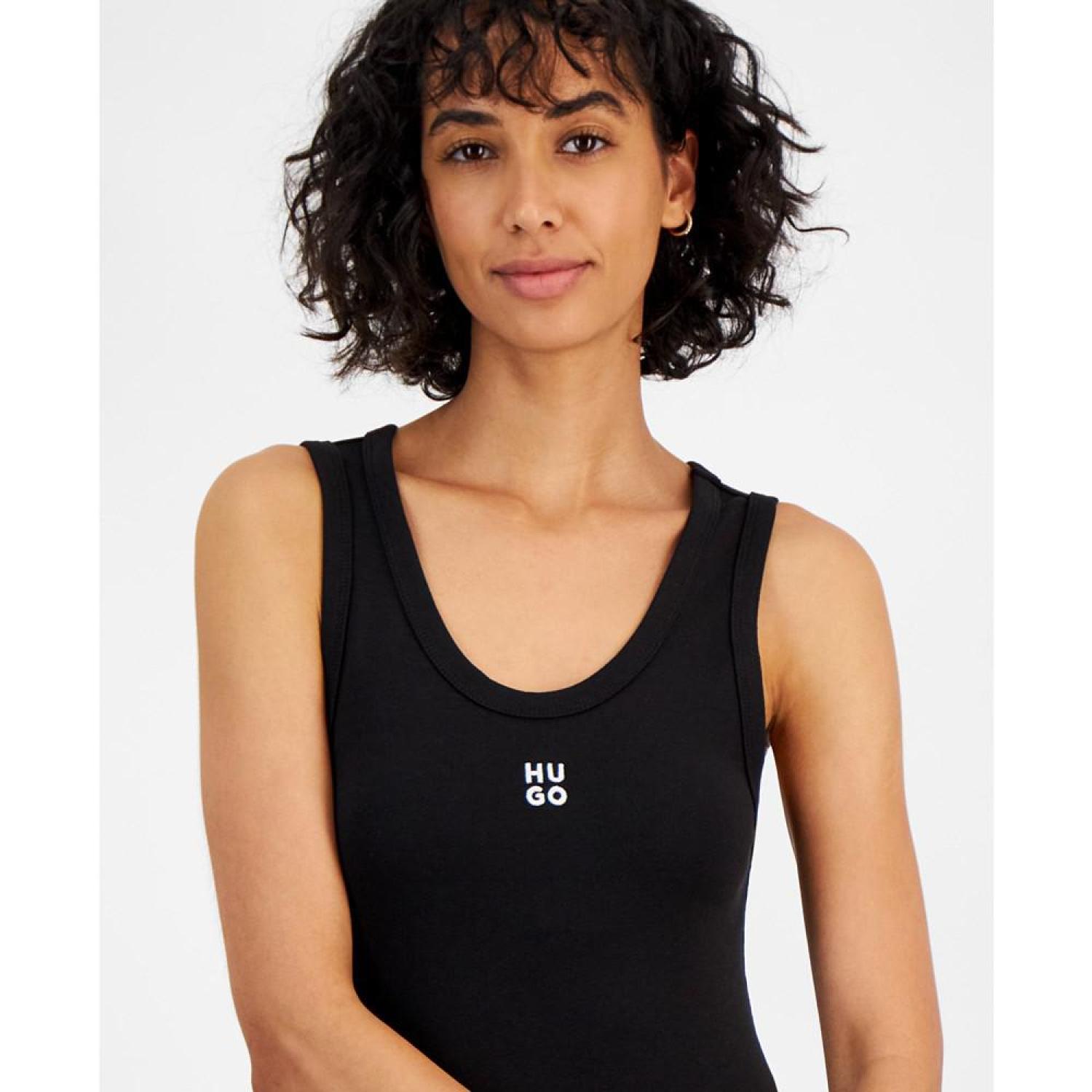 Sleek and slim-fitting, this HUGO tank dress finishes a midi silhouette with an easy-moving side slit. The solid color easily dresses up with strappy heels or relaxes with ballet flats. Approx. 50" long from center back neck to hem Falls below the knee to lower calf Scoop neckline; Midi silhouette Pulls on Sleeveless Logo at chest Slit at left XS=0-2, S=2-4, M=6-8, L=10-12, XL=14-16 Unlined Cotton, polyester, elastane Hand wash Imported