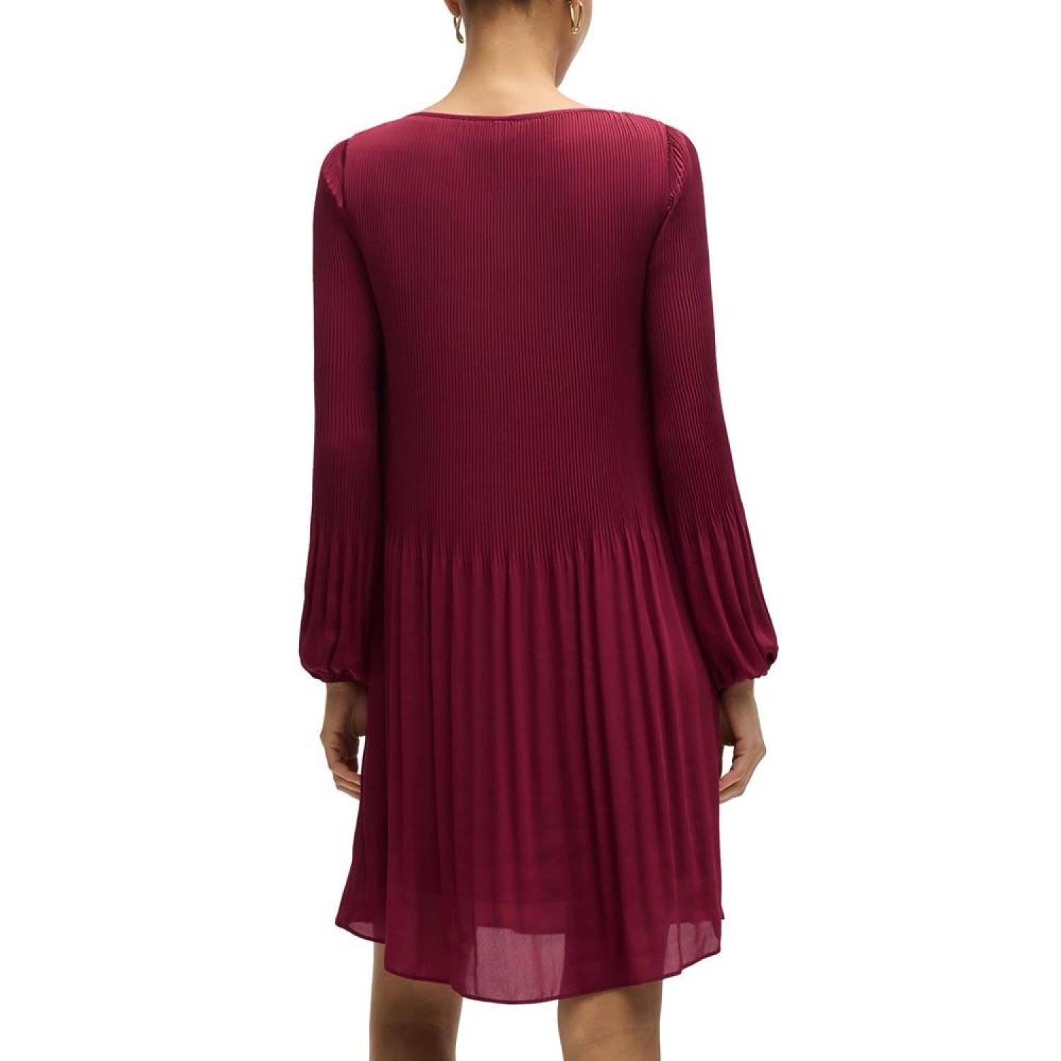Women's Plisse Pleats Regular-Fit Crew-Neck Dress