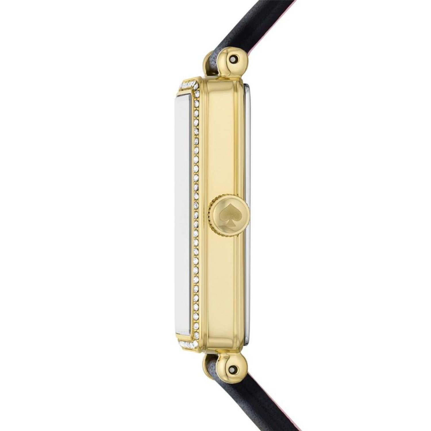 A new way to step up your wrist game- our Rosedale watch. It's white glossy dial and black leather strap elevates your look. Style #KSW1817. Movement- three hand Case- rectangle, gold-tone, stainless steel, 32mm Strap- black leather with single prong strap buckle closure Strap length - approx. adjustable length- 175+/- 5mm Dial- white Water resistant to 30 meters Wipe Clean Imported Sign up for Macy's WorryNoMore® Jewelry & Watch Protection program within 30 days of purchase. Before delivery, call Customer Service 1-800-289-6229 to sign up. After delivery, visit a Macy's store with your dated receipt and jewelry purchase to sign up.