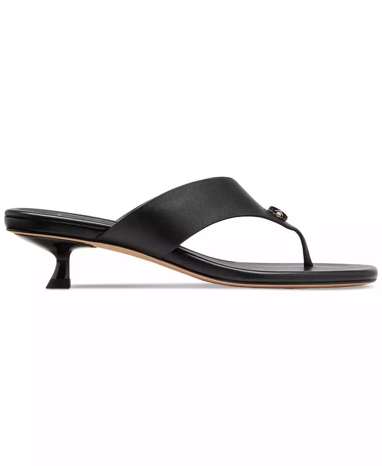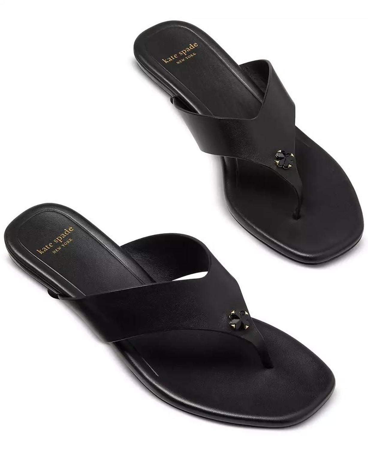 Topped in signature hardware, the Kate Spade New York Spade Flower sandals dress up or down in slip-on style and kitten heels. Kitten heel: 1-1/2" Open toe Slip on Upper: leather; lining: leather; sole: leather Spot clean Imported