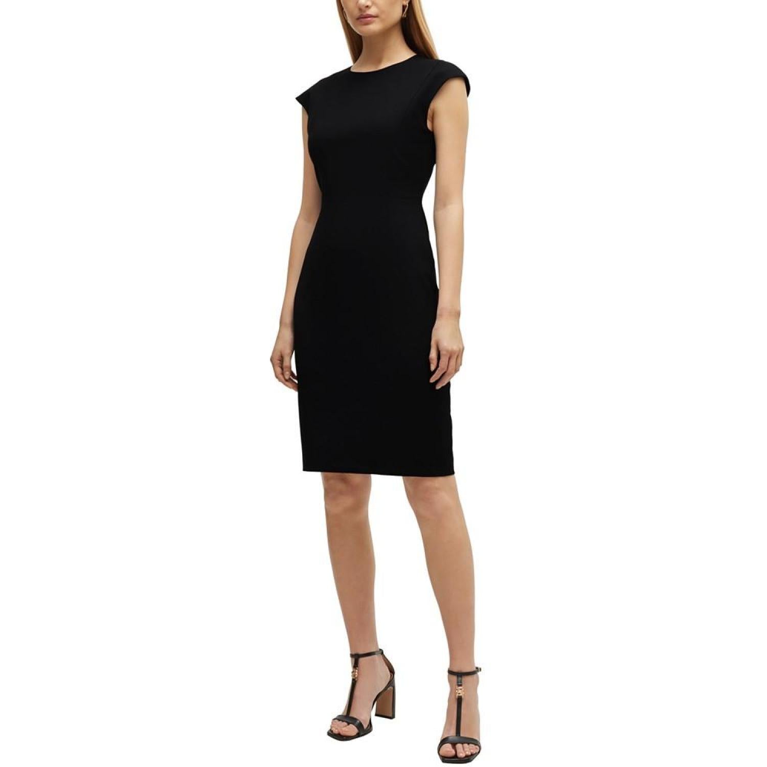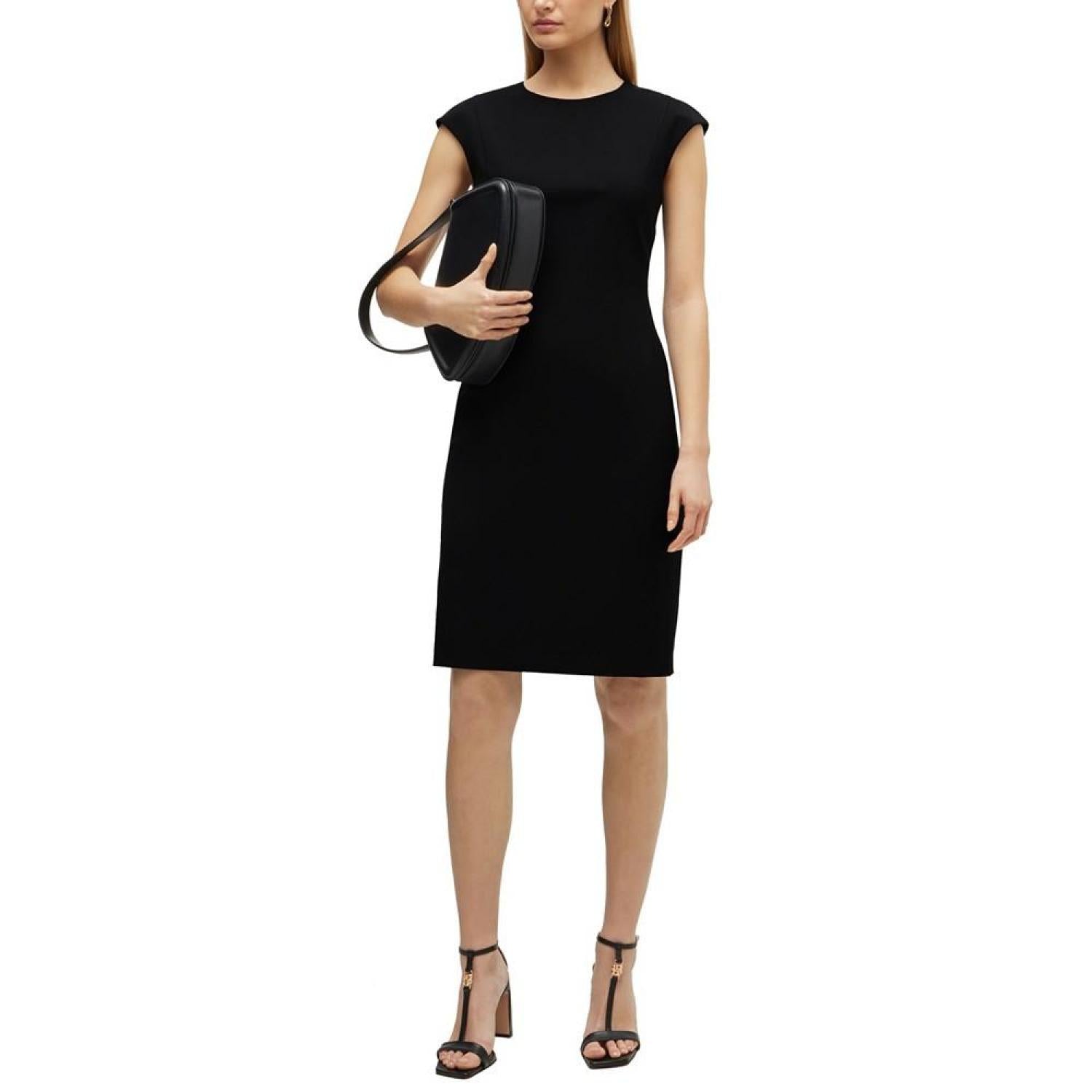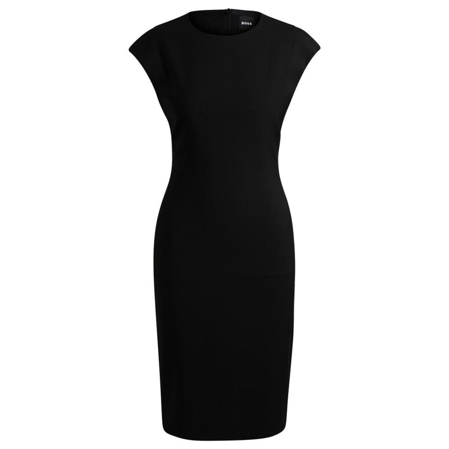 A slim-fitting business dress with cap sleeves by BOSS Womenswear. This distinctive design is crafted in rich wool with smooth lining. The model is a size 36 and is 5'11" tall, with a 24" waist and 35" hips. Slim fit Neckline: Scoop neck Fastening top: Zip closure Cap sleeves Back vent Fully lined Wool Machine washable Imported