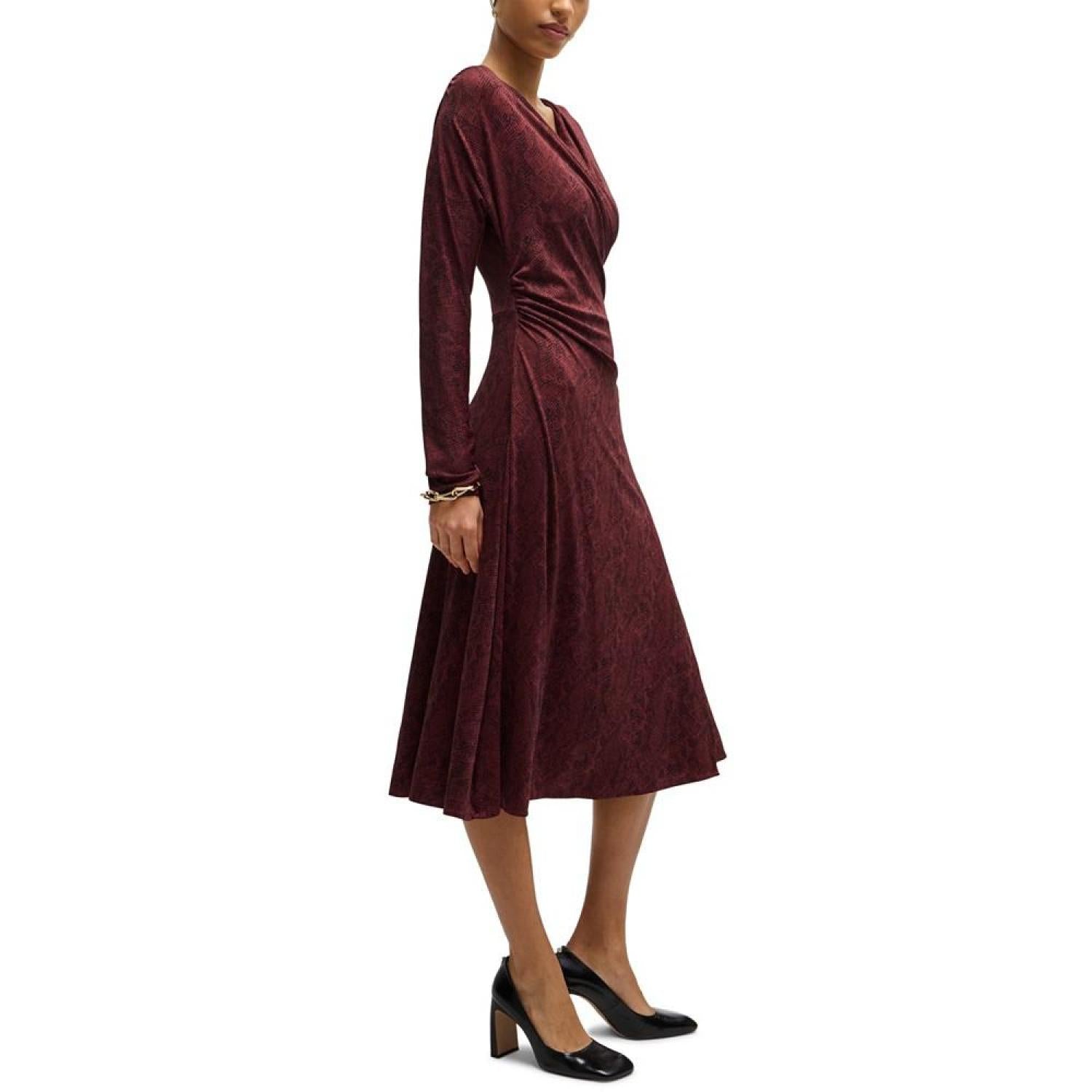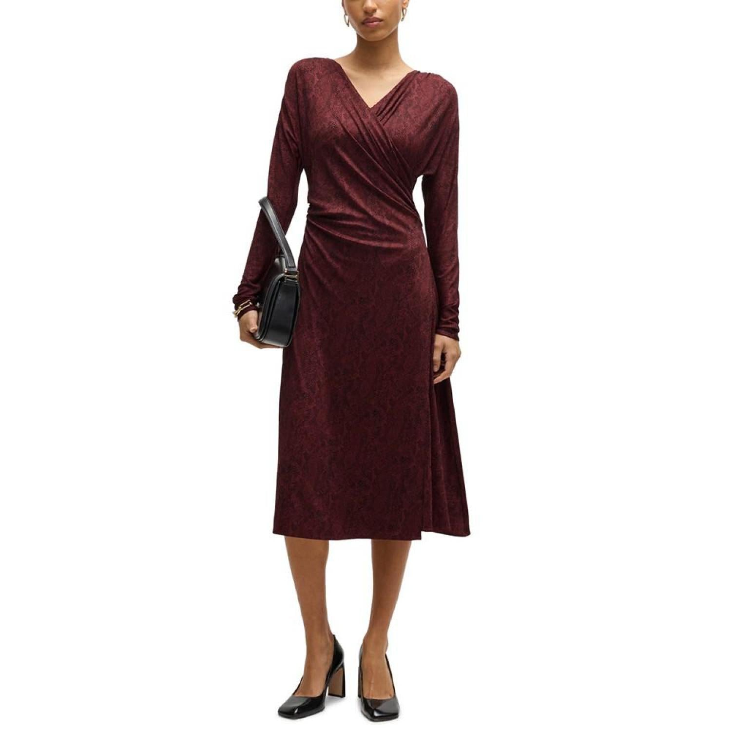 • A feminine dress by BOSS Womenswear. Featuring a contemporary pattern, this elegant dress is crafted in soft knitted jersey blended with a touch of cotton. The wrap front adds a flattering touch to this long-sleeved piece.