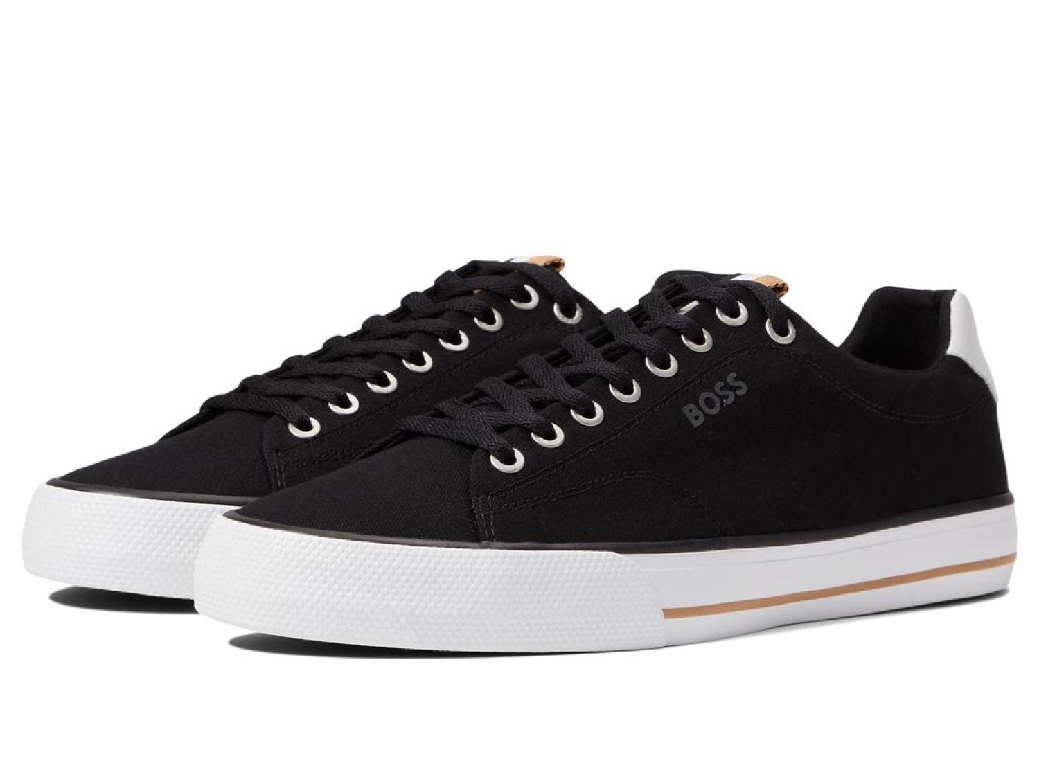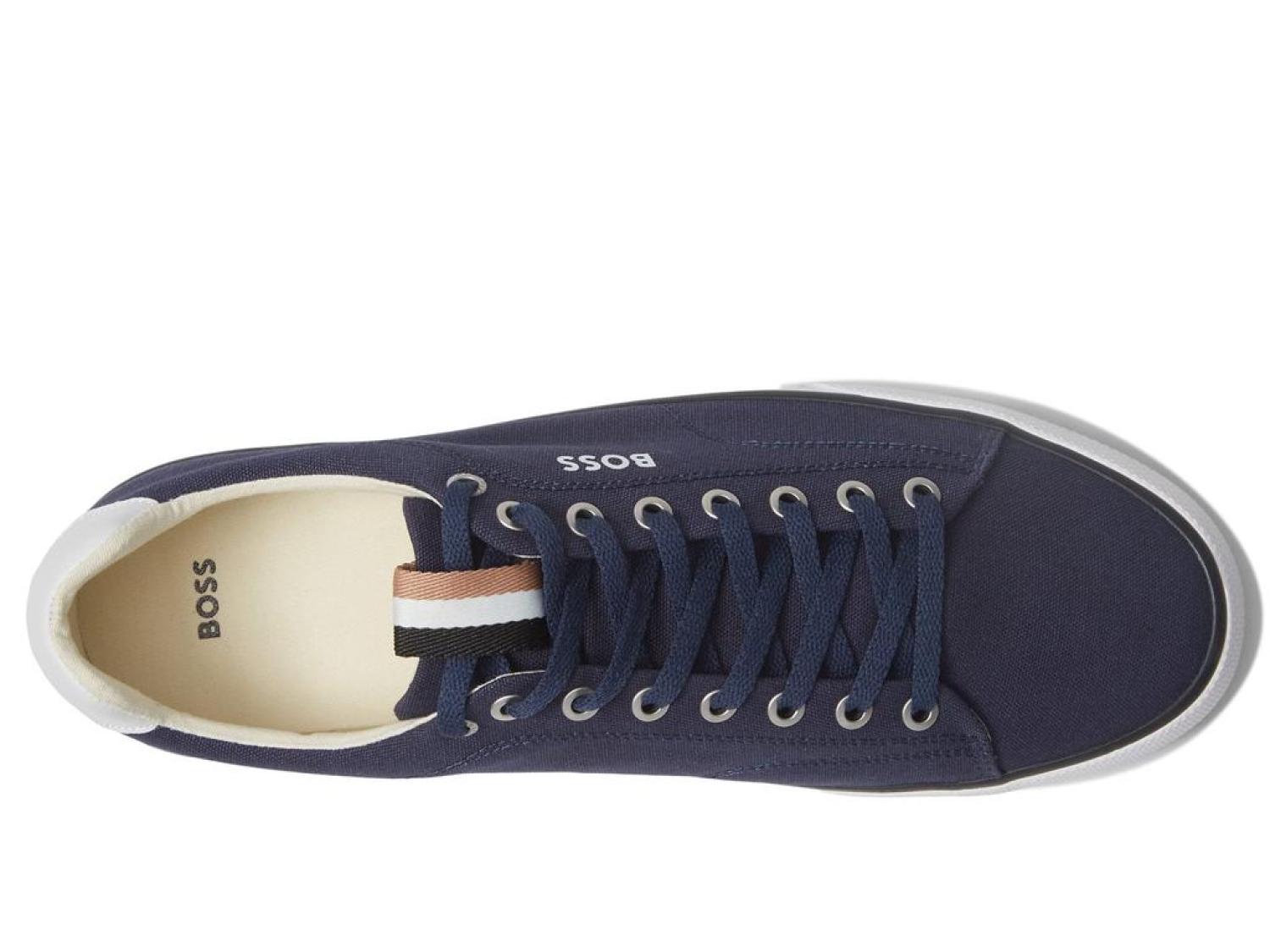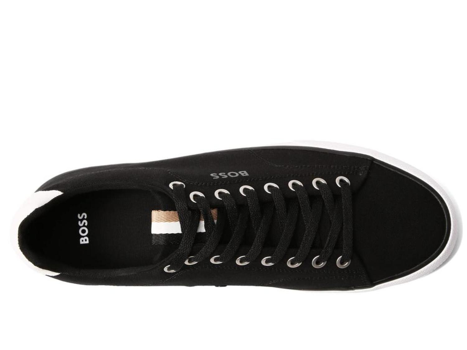Get ready to flaunt a statement look as you step out wearing the BOSS Hugo Boss® Aiden Low Top Sneakers. Textile upper and lining. Comfortable insole. Lace closure. Low top style shoes. Round toe. Synthetic outsole. Imported. Product measurements were taken using size EU 42 (US Men's 9), width D - Medium. Please note that measurements may vary by size. Measurements: Weight: 15 oz-