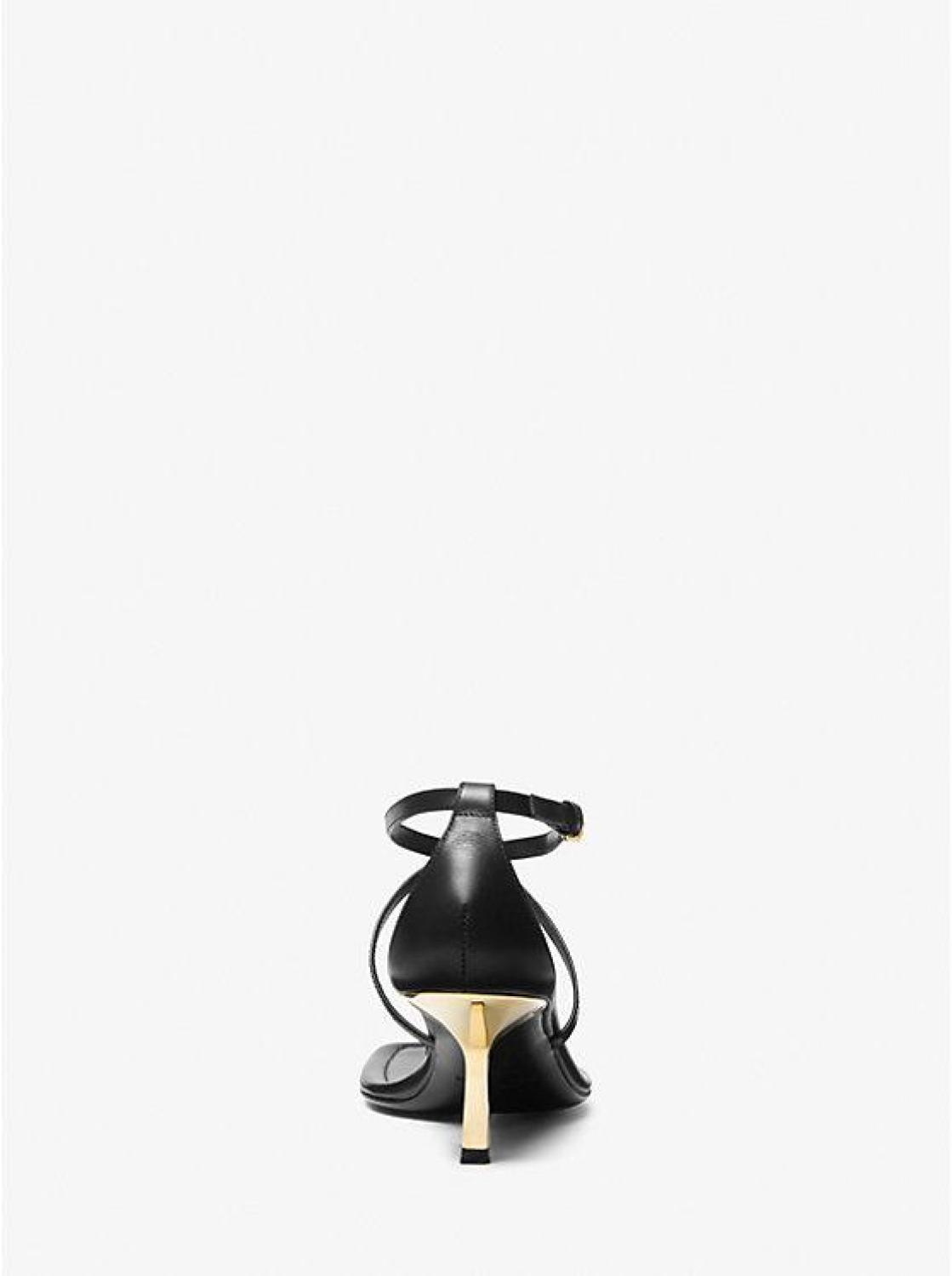 • Introducing Anna: a bold take on the classic black kitten-heel sandal. Five delicate leather straps come together at the center of the ankle to create a unique silhouette, while a dainty galvanized kitten heel adds a hint of shine. Recreate the Spring/Summer 2024 runway look by pairing them with a crochet mini dress. Made in Italy.