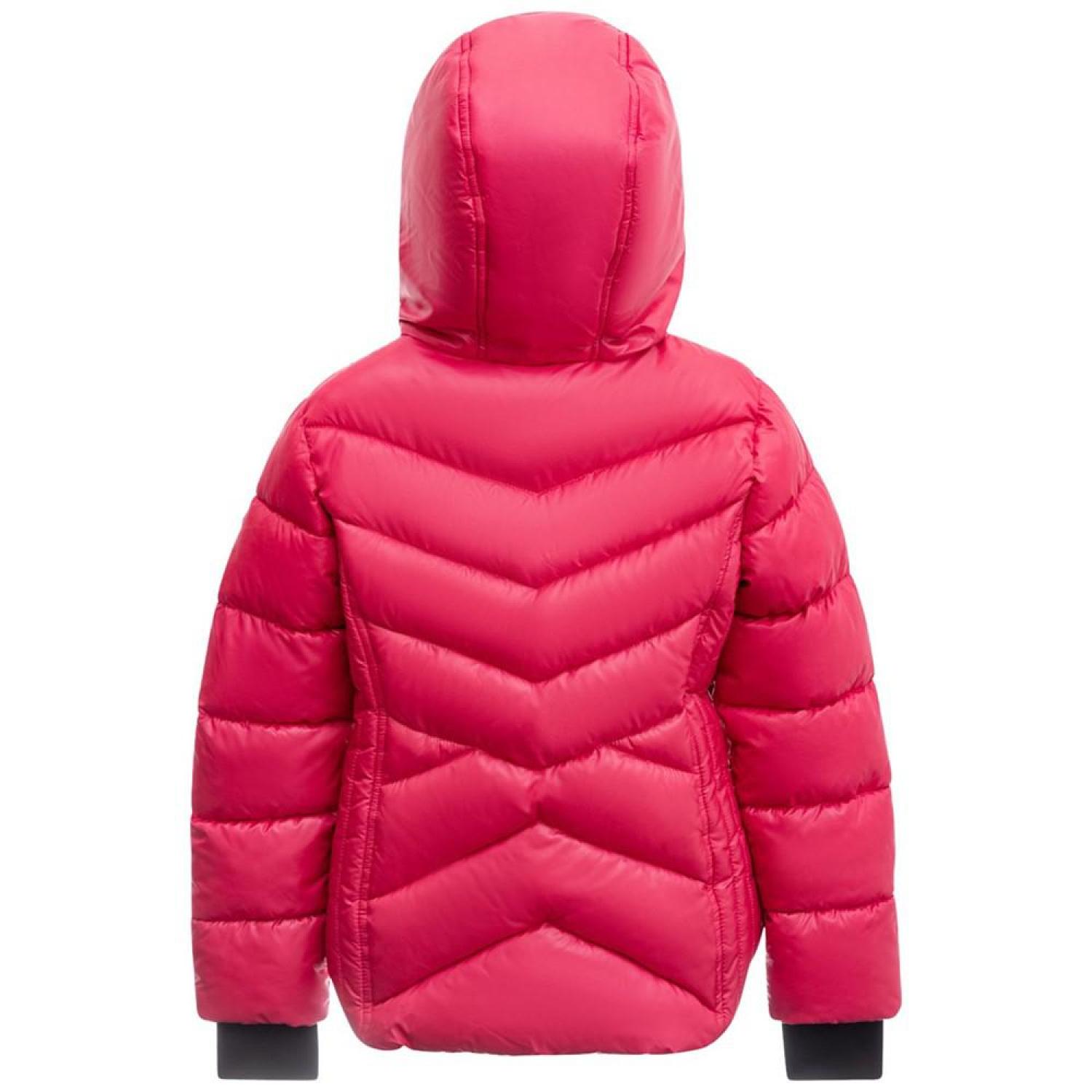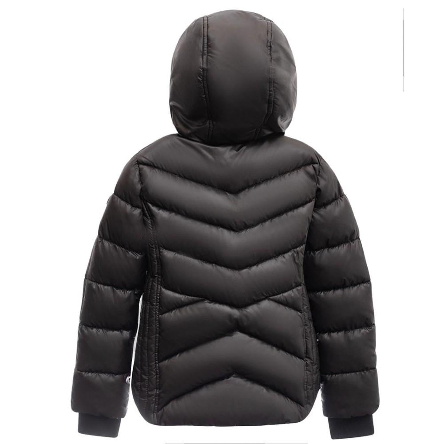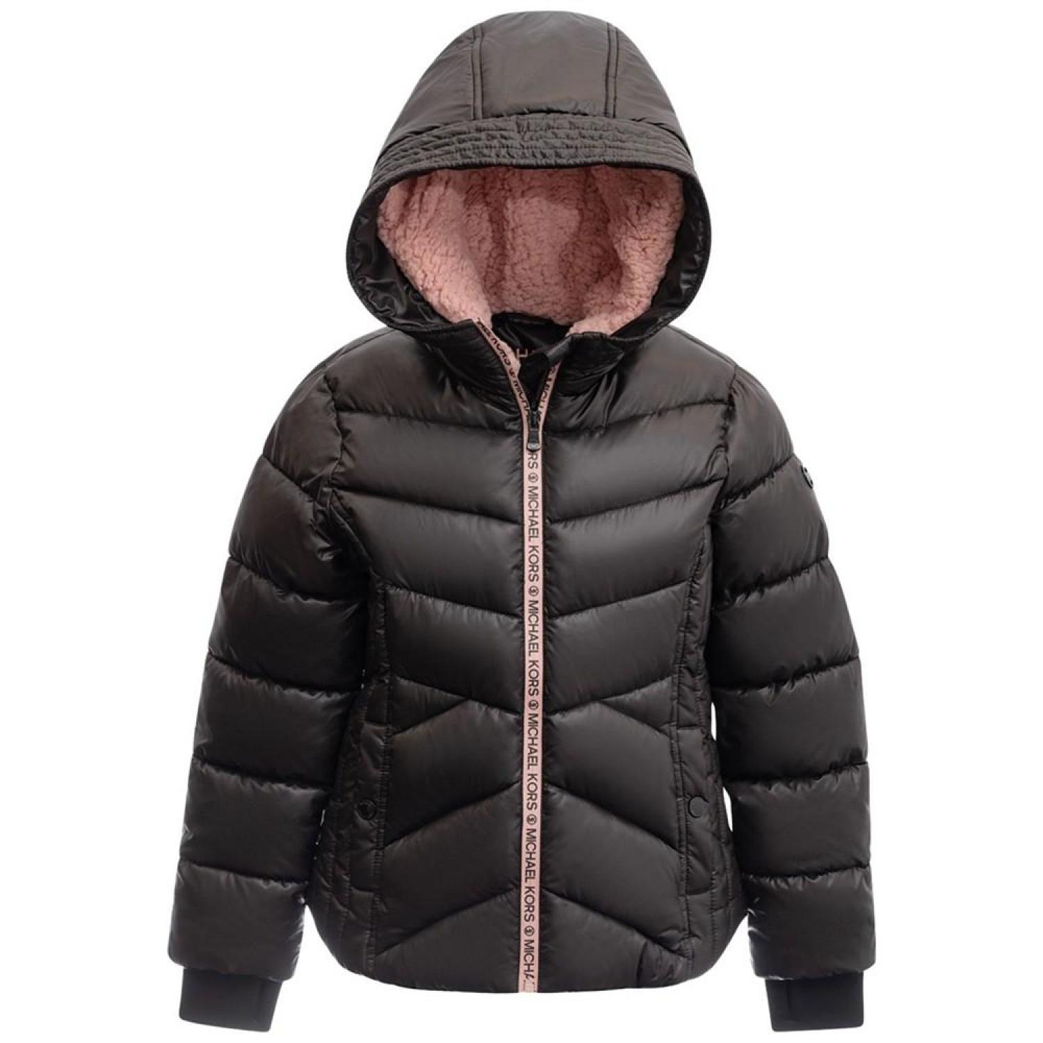 Girls heavy weight active puffer jacket with MK logo zipper taping. Pocket snaps and metallic arm charm Fleece lining Berber lined hood Knit cuffs with thumb holes Polyester Machine washable Imported