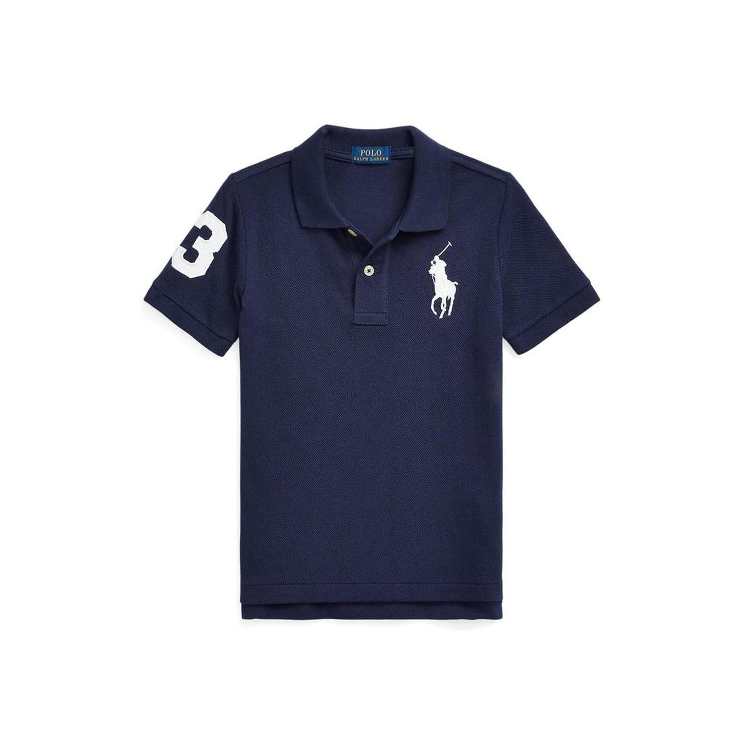 • The versatile Polo Ralph Lauren® Kids Cotton Mesh Polo is essential to his classic style. The regular fitting polo shirt features lightweight, breathable cotton mesh fabric, short sleeve construction, and foldover polo collar with a two-button placket. An oversize embroidered pony on the chest and a tennis tail hemline complete the look.