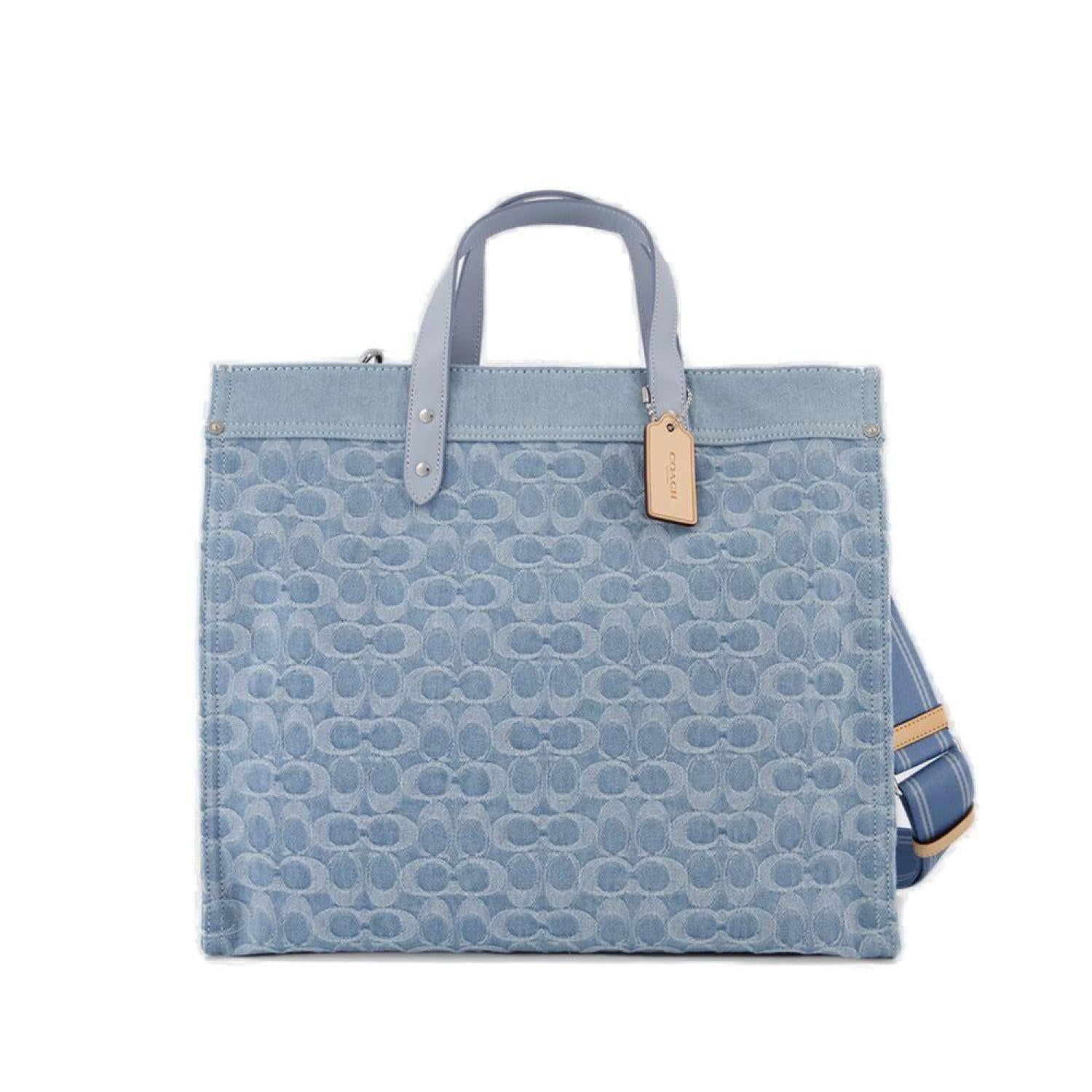 • Dimensions: Width: 40cm, Height: 36.5cm, Depth: 20cm, Strap: 60cm, Handle: 16cm  100% Denim, 100% Leather Made in Vietnam  Designer Model Number: CG023PBU Designer Colour: PALEBLUE