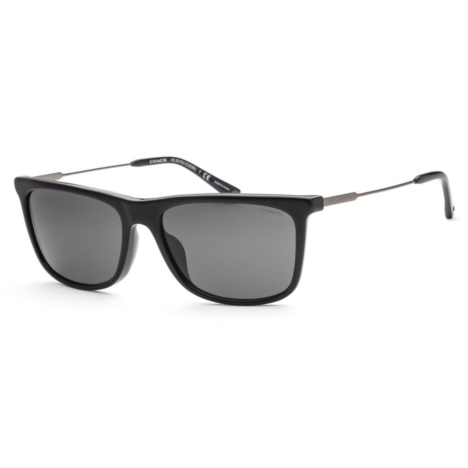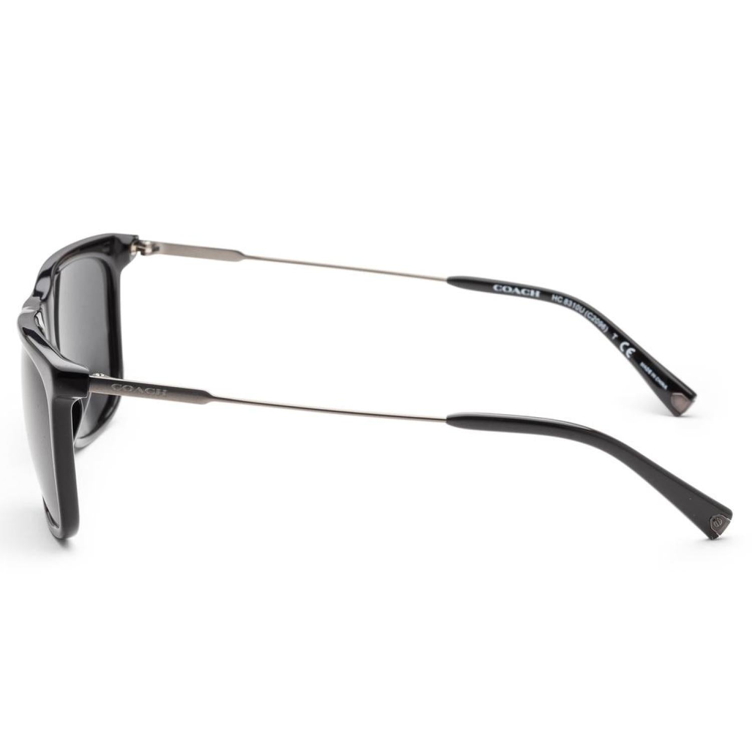 • The Coach men's Sunglasses measure at a 58 mm lens width, 17 mm bridge width, and 145 mm arem length. The frame is rectangular-shaped black black. The lens is 100% UV protection non-polarized dark grey solid. (HC8310U-500287-58)