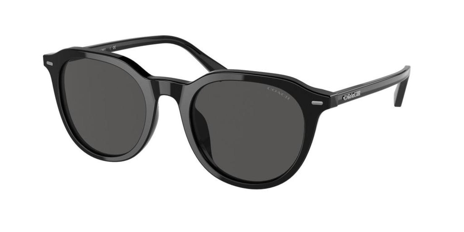 Dimensions - 52 mm x 21 mm x 145 mm. The frame is Acetate Round shaped. The frame is Black and the lens is Grey Solid.