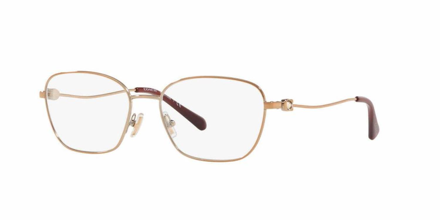 • The Coach women's Opticals measure at 54 mm lens width, 17 mm bridge width, and 140 mm arm length. The frame is rectangular-shaped shiny rose gold metal. Made in China (HC5103B-9331-54)