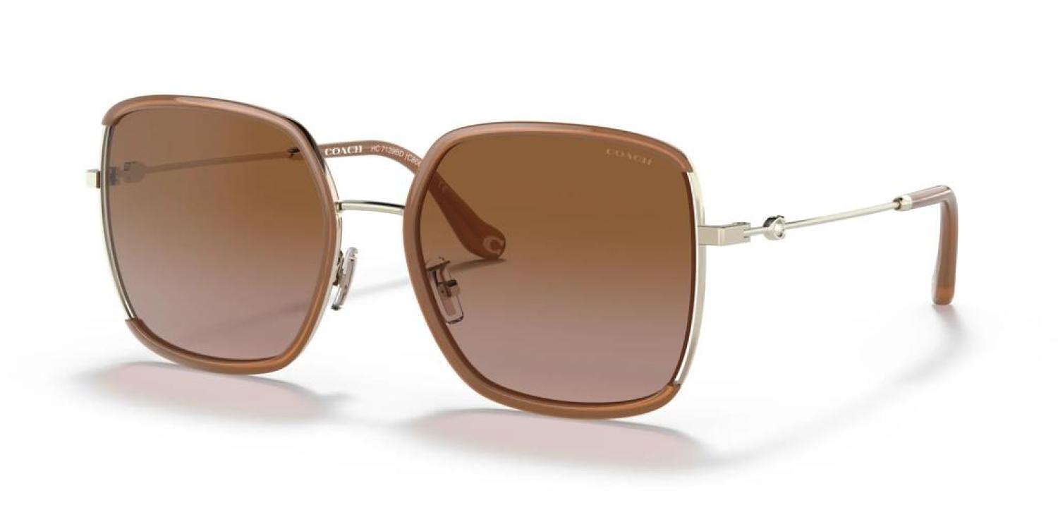 • Coach Women's Sunglasses. Dimensions - 58 mm x 19 mm x 145 mm. Rose Gold and Oxblood Square Metal frame, Burgundy Clear Gradient lenses. 100% UV Protection, Non-Polarized. Made in China. (HC7139BD-94028D-58)