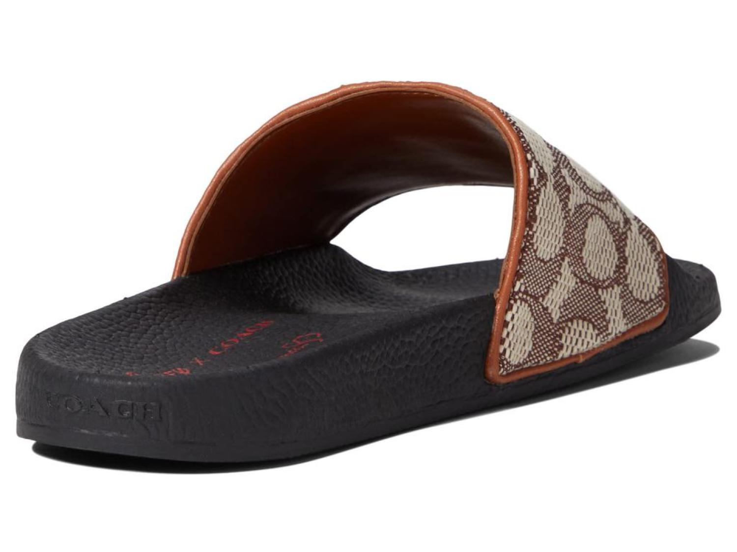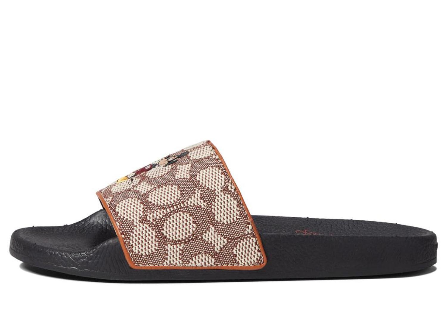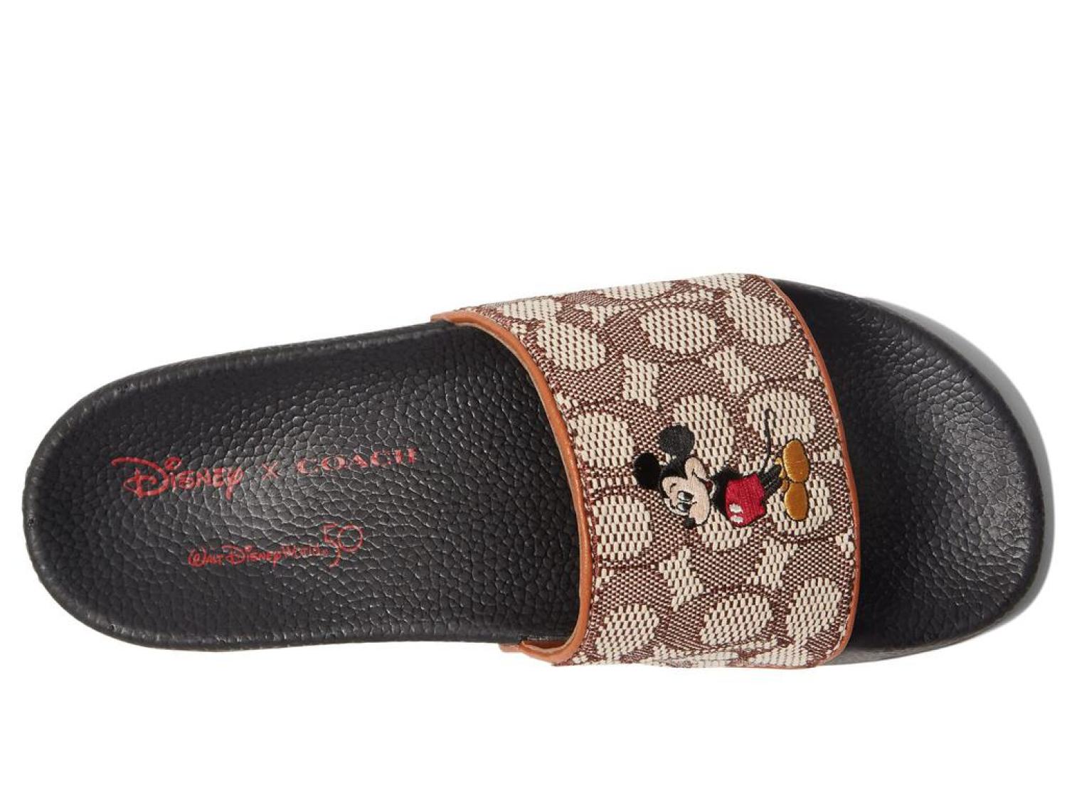 Bring vibrant colors to your outfit! The COACH® Disney Parks Signature Textile Jacquard w/Mickey and Friends Embroidery Sandals keep your feet comfy.