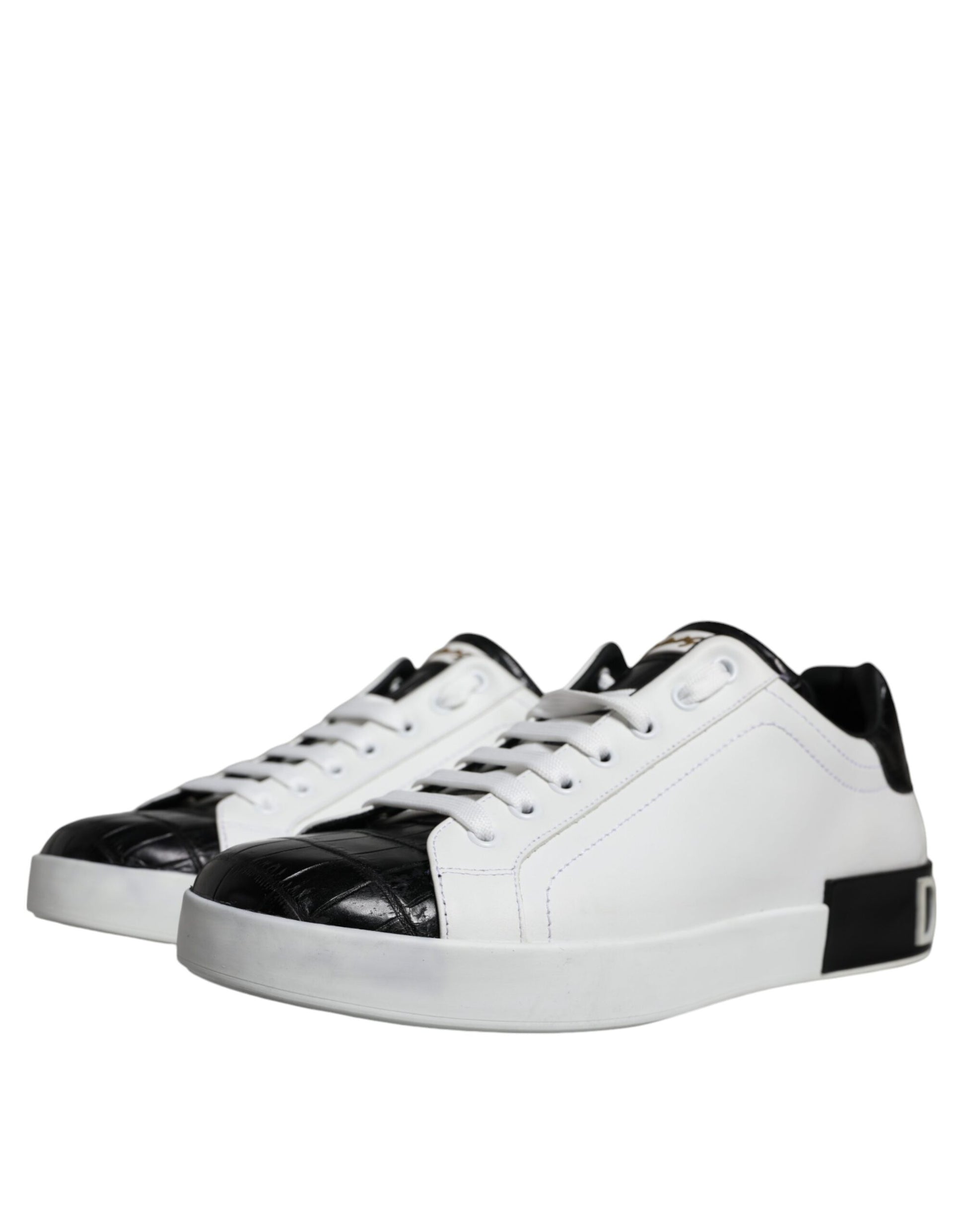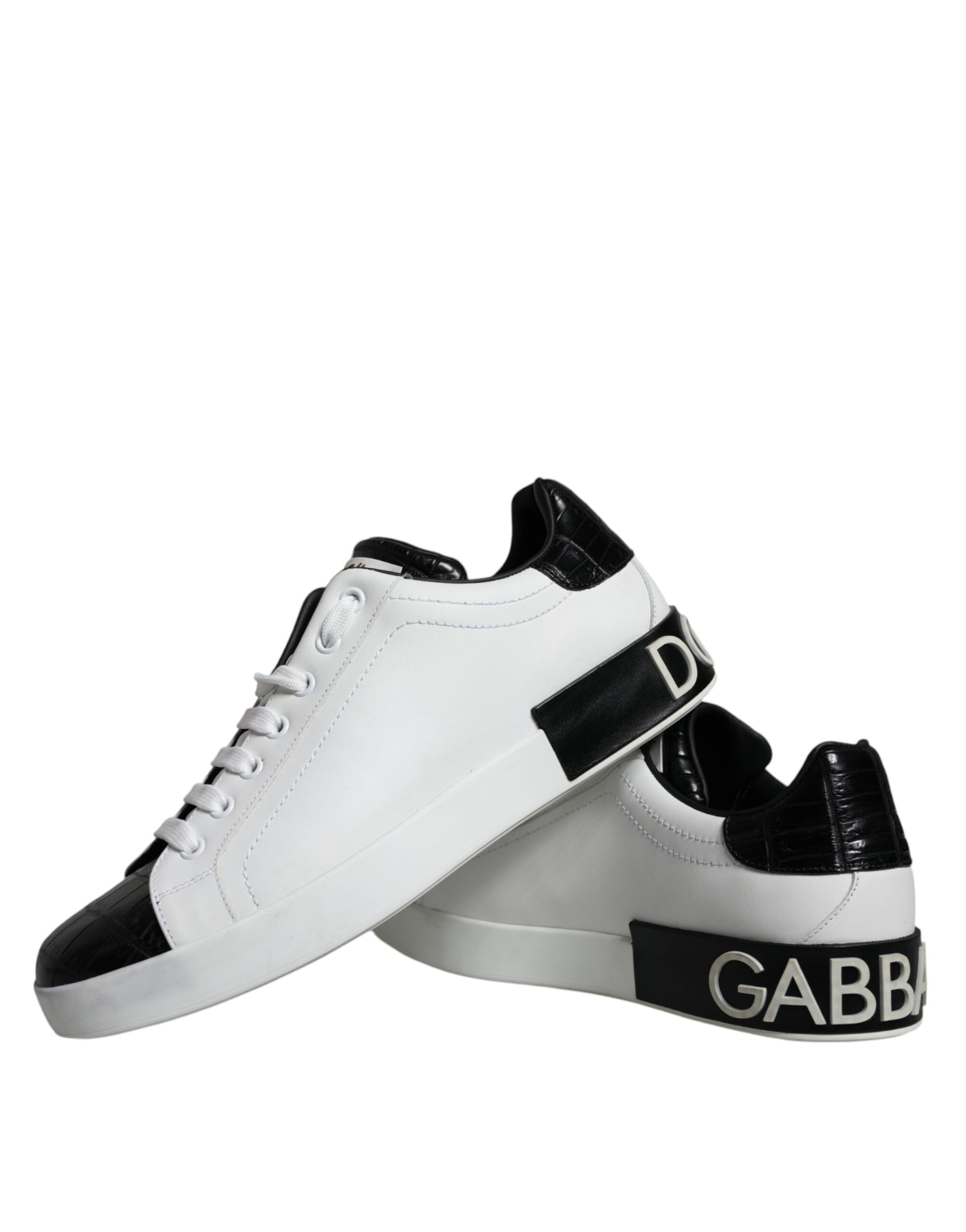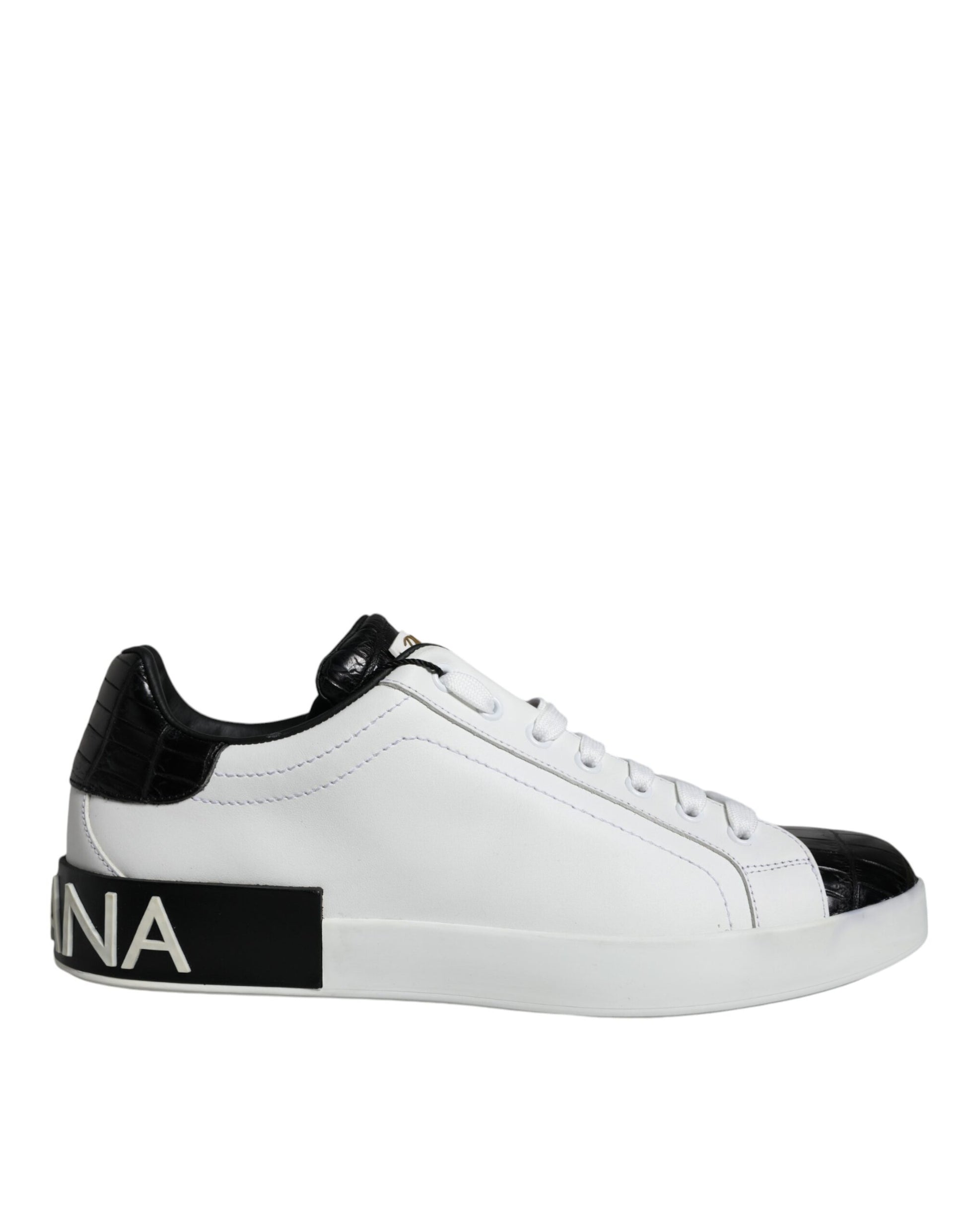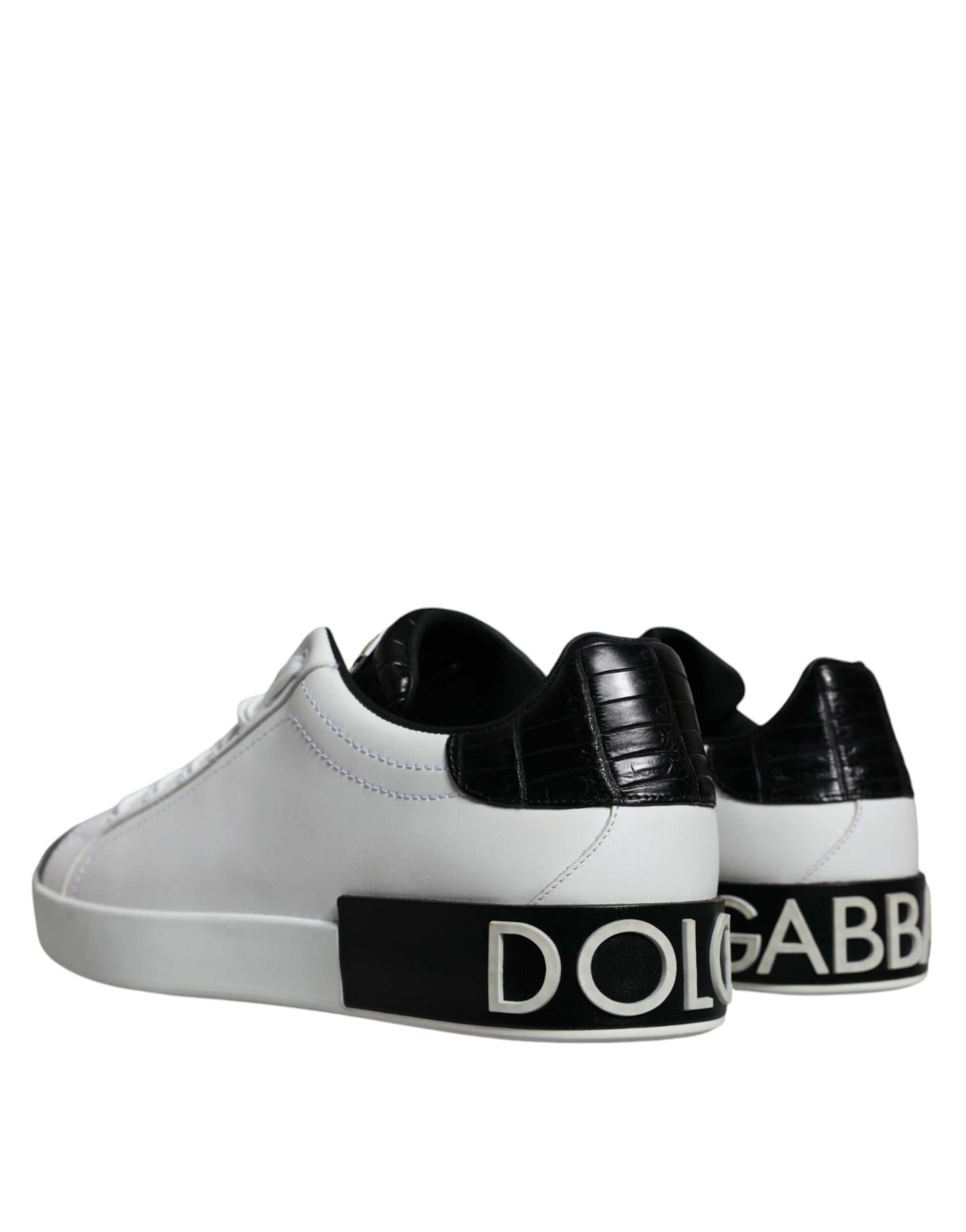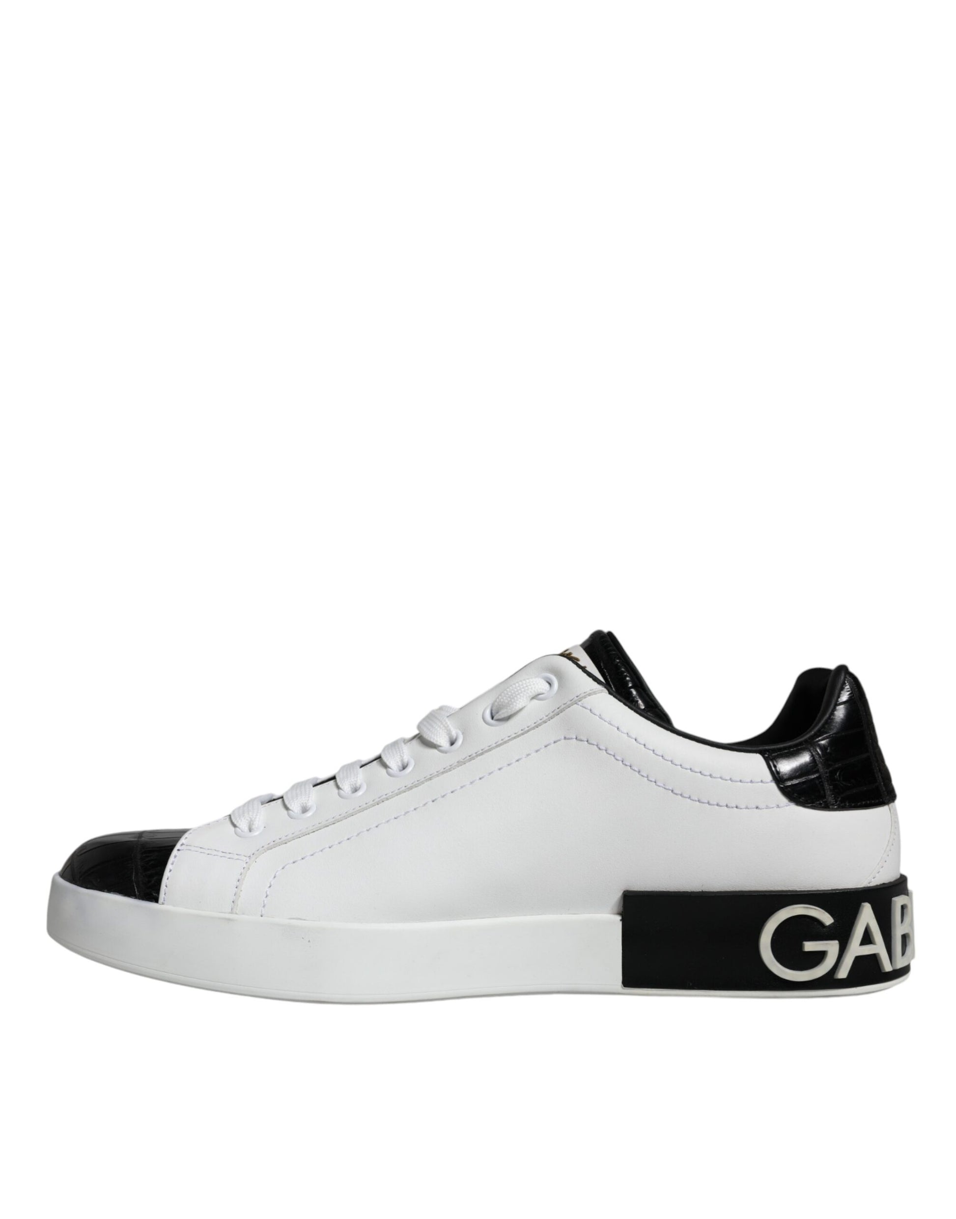 Dolce & Gabbana White Leather Logo Portofino Sneaker Shoes