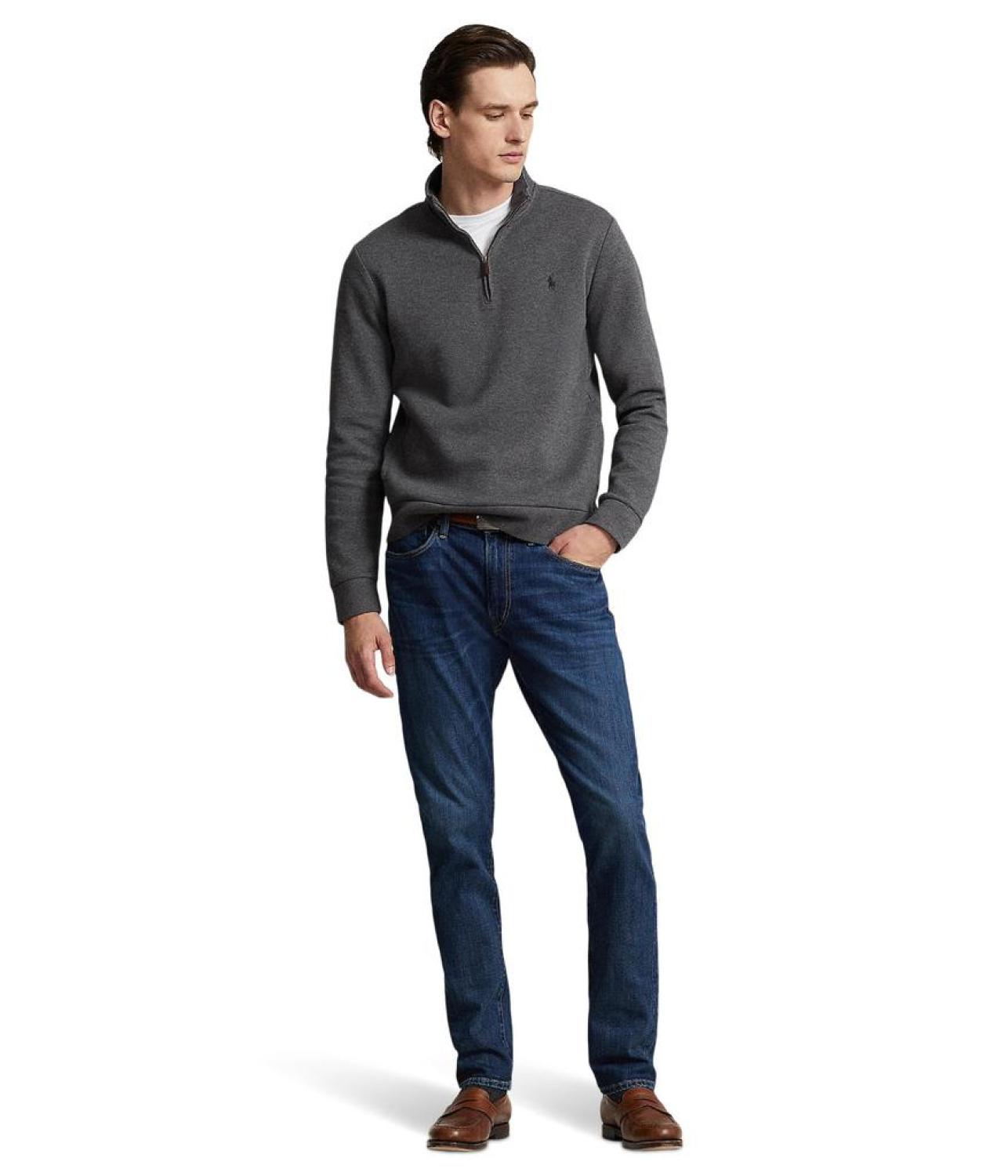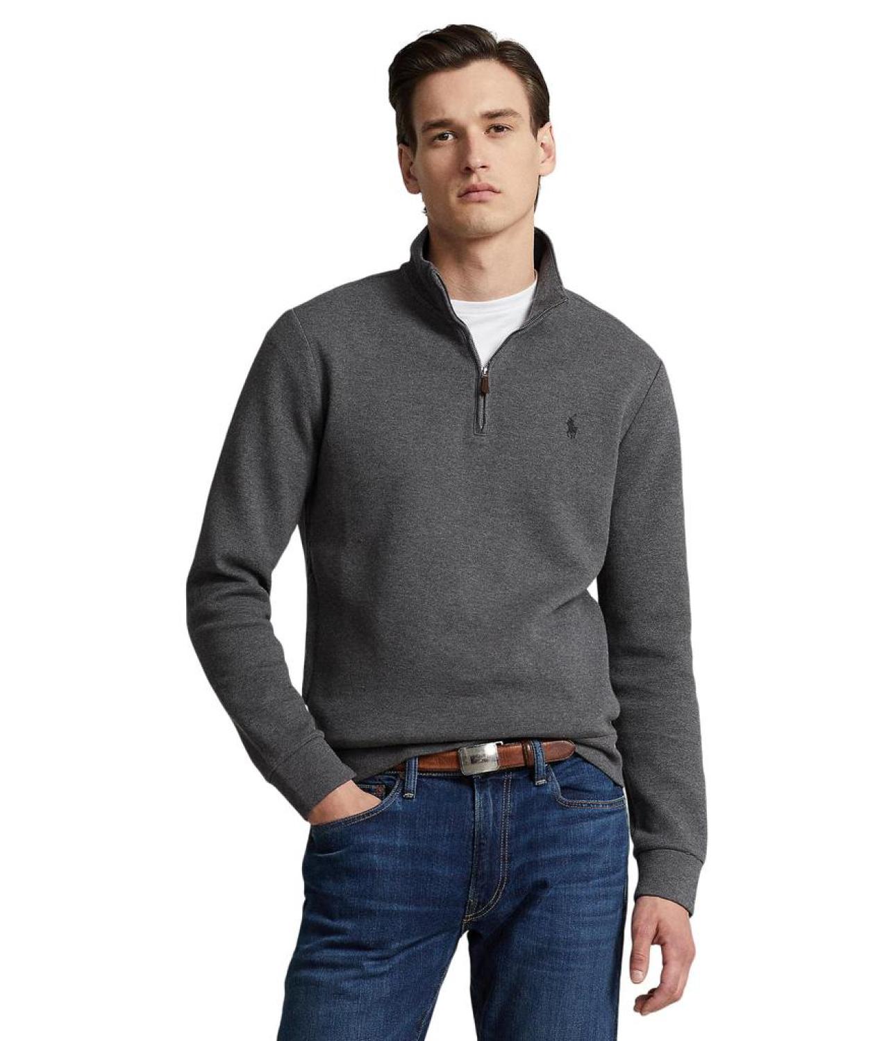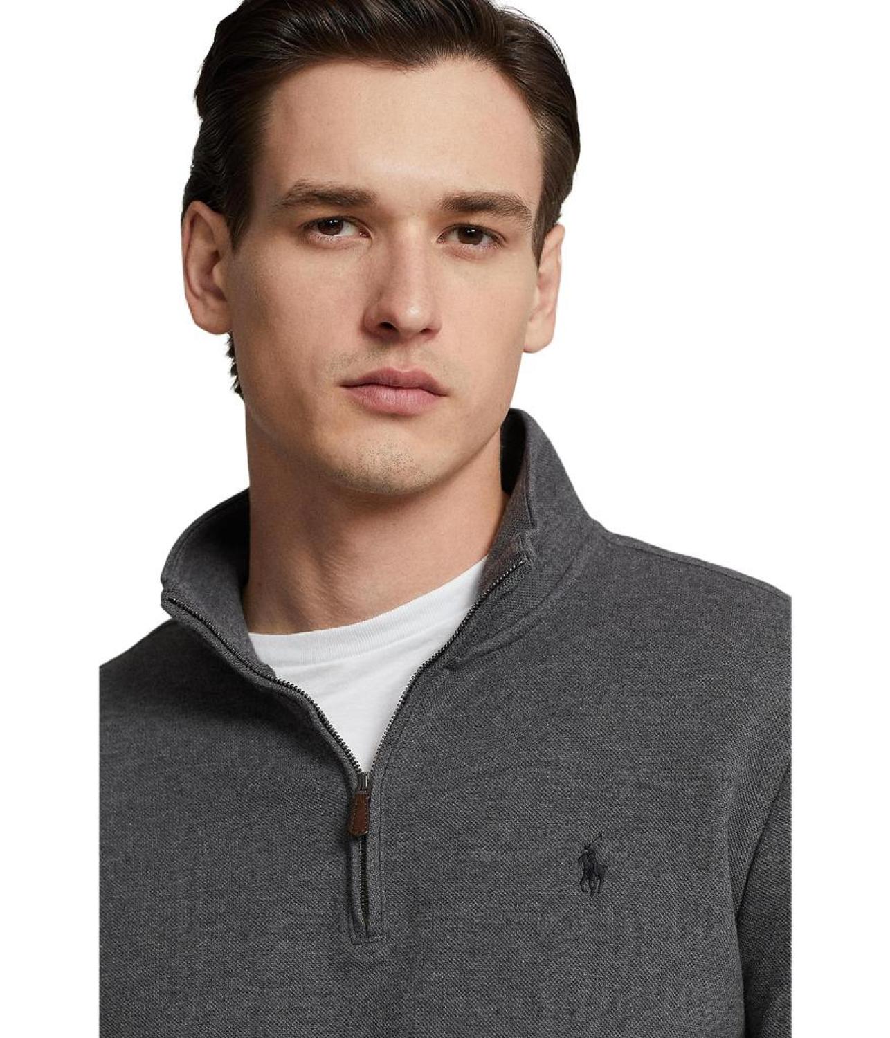 • The Polo Ralph Lauren® Double-Knit Mesh 1/4 Zip Pullover boasts a lightweight yet comfortable fit, making it an ideal pick for all casual outdoor gatherings. It features a mockneck, quarter-zip placket, long sleeves with banded cuffs, and banded hem. The kangaroo pocket is designed for functionality and the signature embroidered Pony at the left chest offers an authentic vibe.