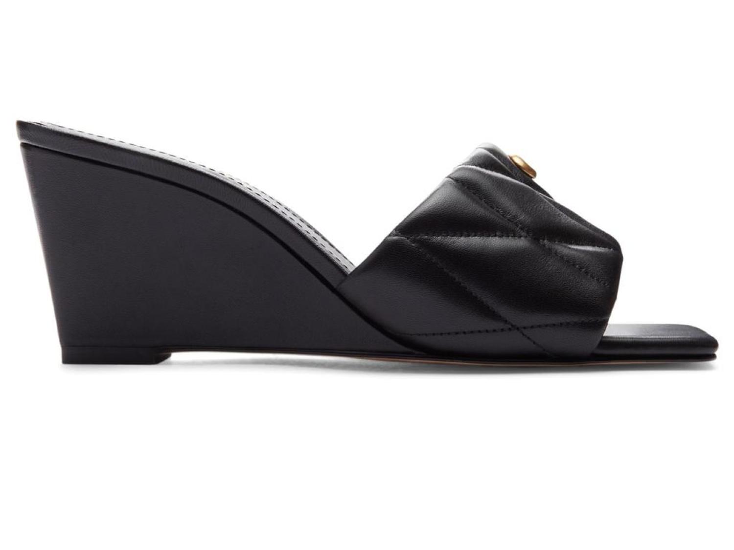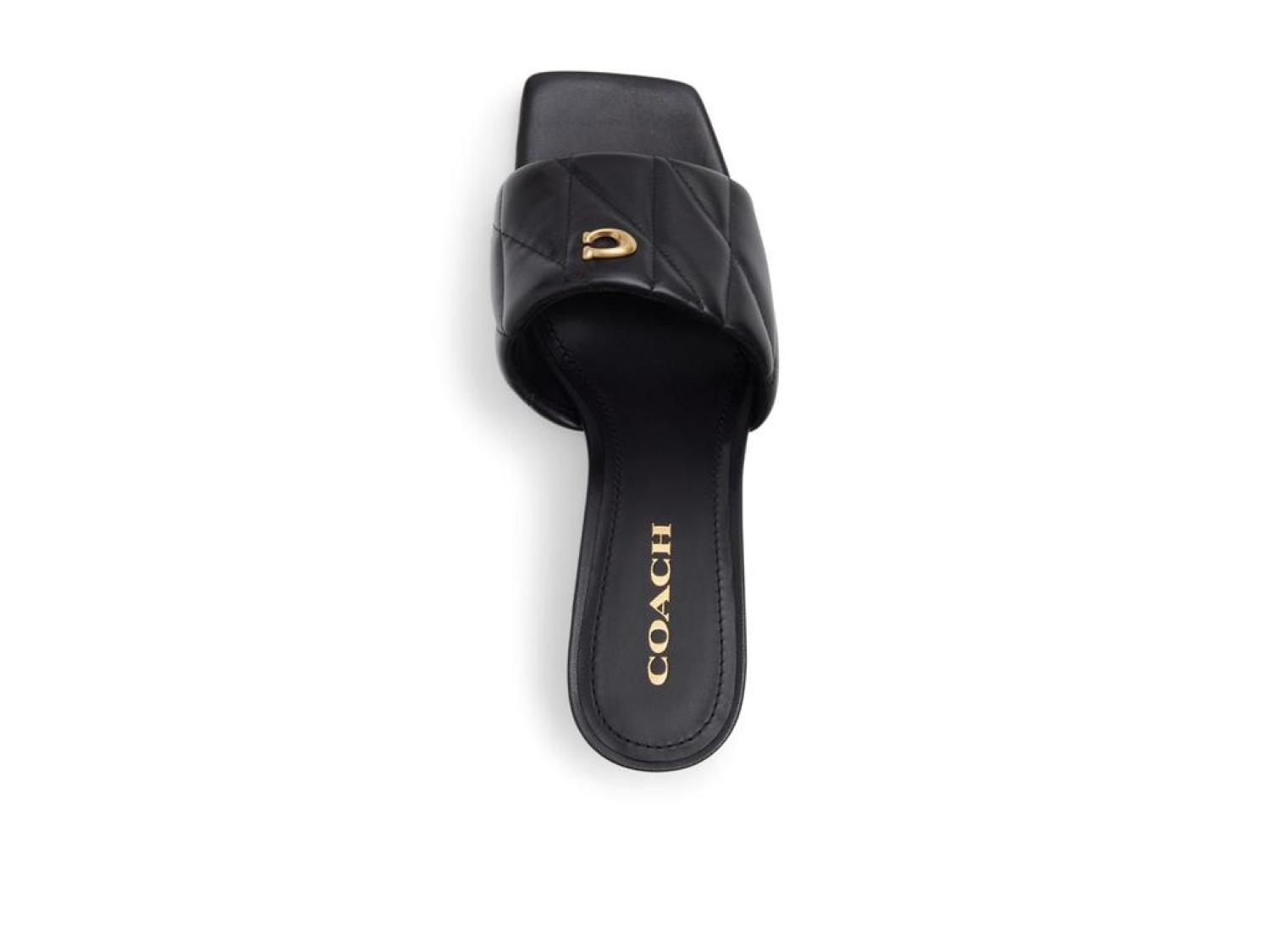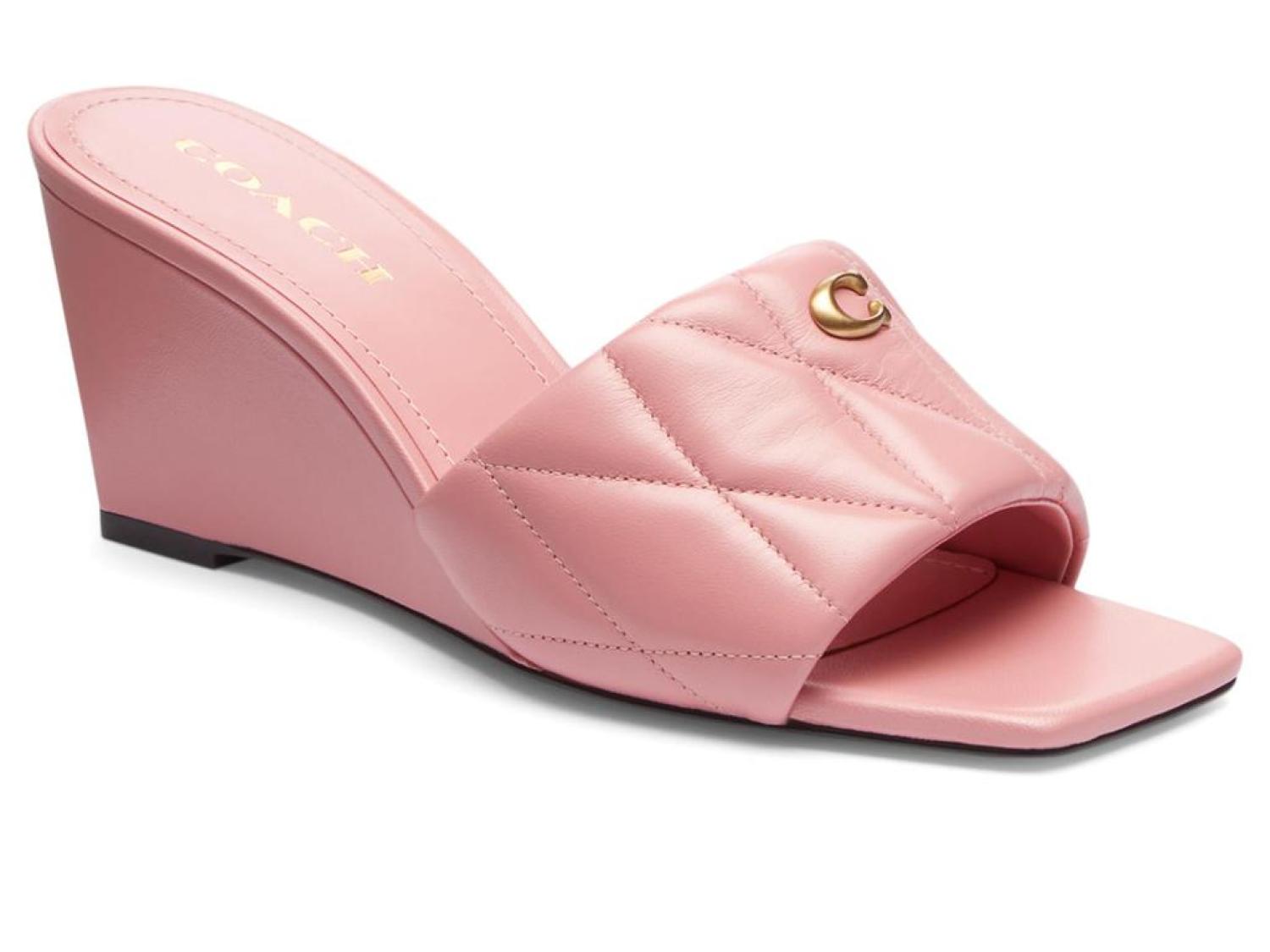 Simple yet impressive, the COACH® Emma Wedge Heels are framed in a modern open square toe silhouette with a logo-accented, quilted leather upper, a soft man-made leather lining, and a lightly padded leather footbed. Coming in a slip-on style, the shoes are perfect for the woman on the go.