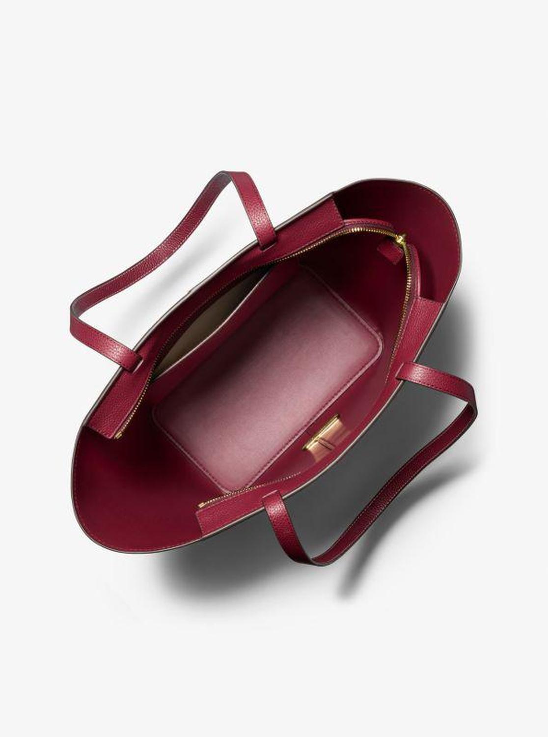 The epitome of timeless style, this structured tote deserves a spot in your handbag repertoire. Signature-print canvas and leather make up the mixed-media exterior, which lends a modern feel to the otherwise classic silhouette. A zip closure opens to a spacious interior compartment, perfect for holding your tablet, phone, and more on-the-go necessities.