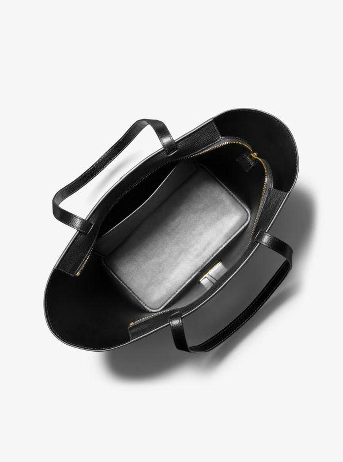 • The epitome of timeless style, this structured tote deserves a spot in your handbag repertoire. Signature-print canvas and leather make up the mixed-media exterior, which lends a modern feel to the otherwise classic silhouette. A zip closure opens to a spacious interior compartment, perfect for holding your tablet, phone, and more on-the-go necessities.