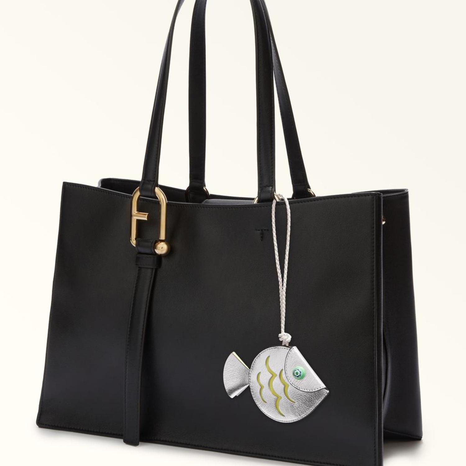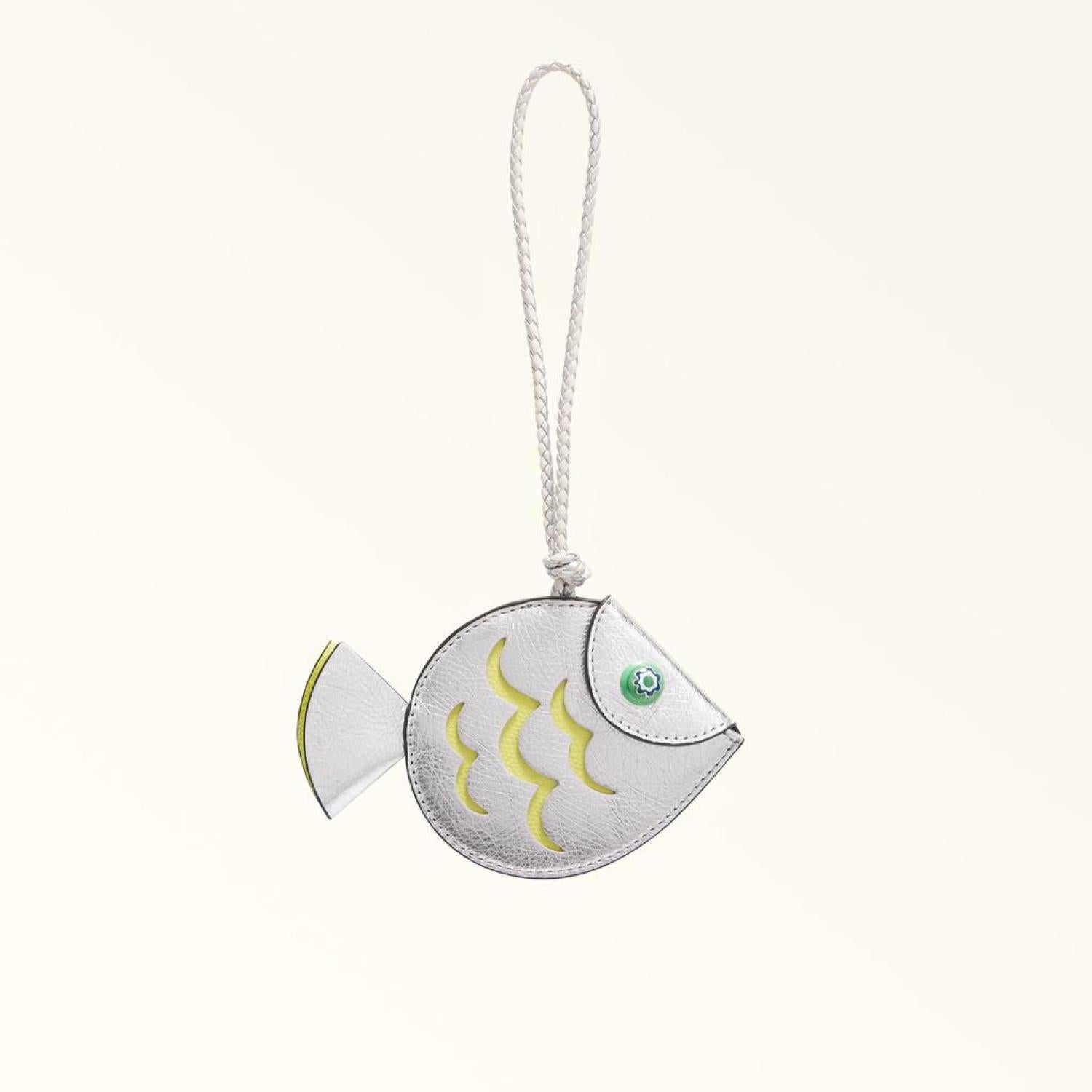 A little fish for keeping your change and smallest belongings safe. Furla Allegra is a unique, metallic leather coin purse. A summer-ready accessory that's sure to make waves – hook onto the handles of your favourite bag or slip its leather strap around your wrist.