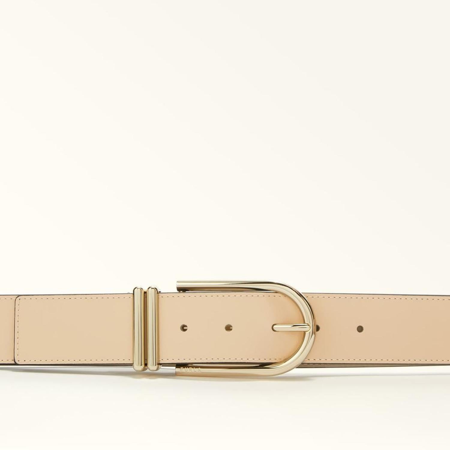 This Furla Camelia belt is elegant and refined, making it perfect for any place and any time. It is crafted in luxurious smooth leather and features a rounded buckle with a satin finish. - First loop with metal double ring - 4 cm deep