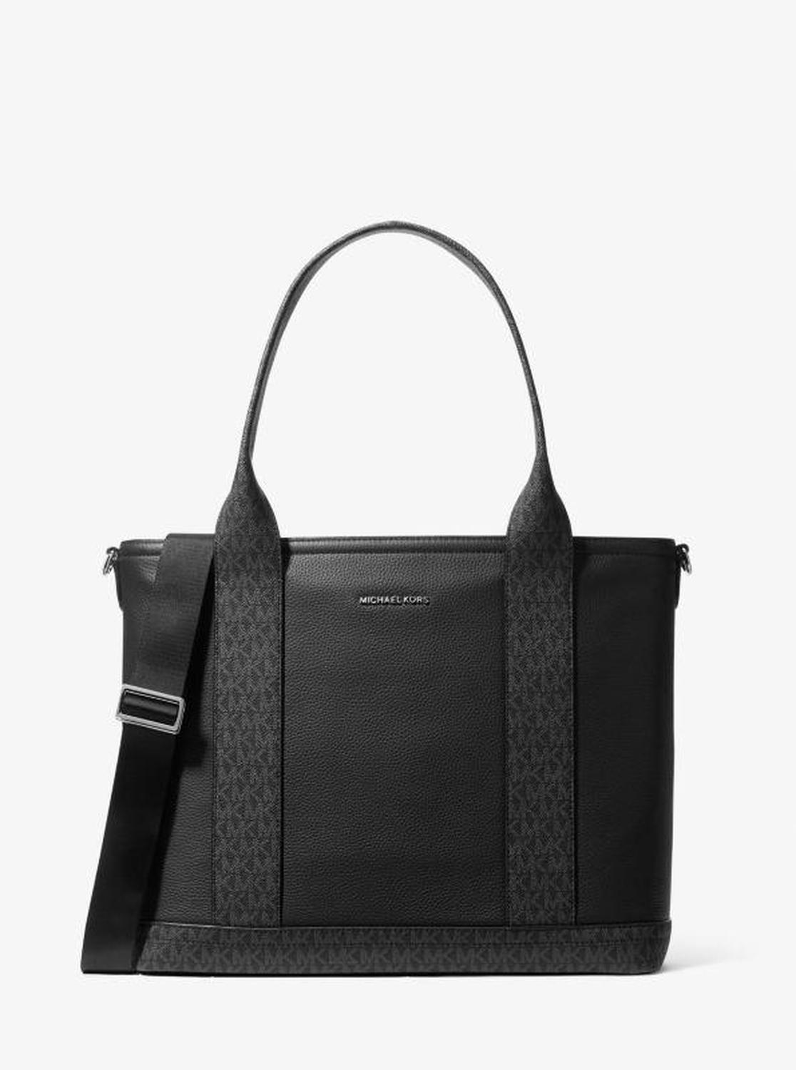 • Our newest addition to the Hudson family proves the endlessly versatile nature of the beloved work tote. Crafted from durable pebbled leather with Signature logo-print trim, it opens to reveal multiple interior pockets, including a dedicated 15” laptop compartment. You’ll love the exterior trolley sleeve and adjustable crossbody strap that make it easy to carry to school, work, and everywhere else in between.