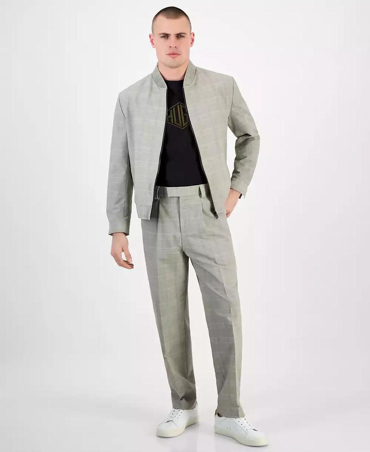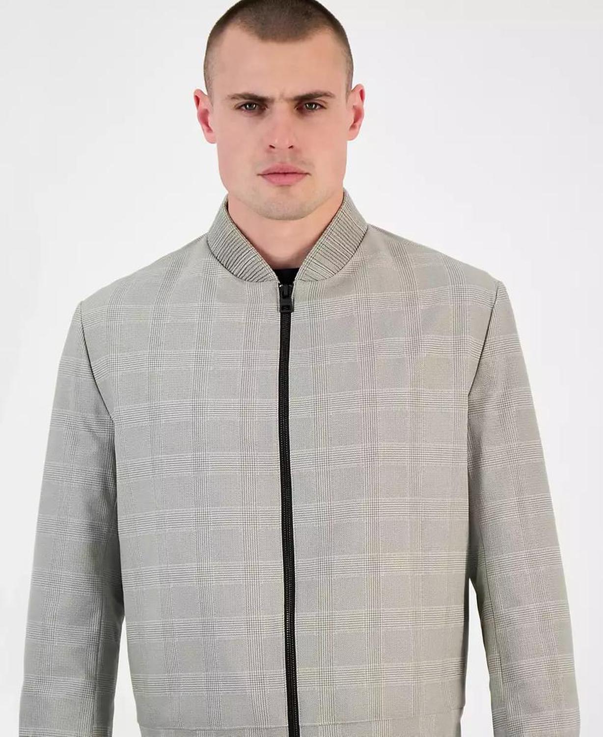 HUGO by Men's Ukashi252f1x Modern-Fit Glen Check Full-Zip Bomber Jacket