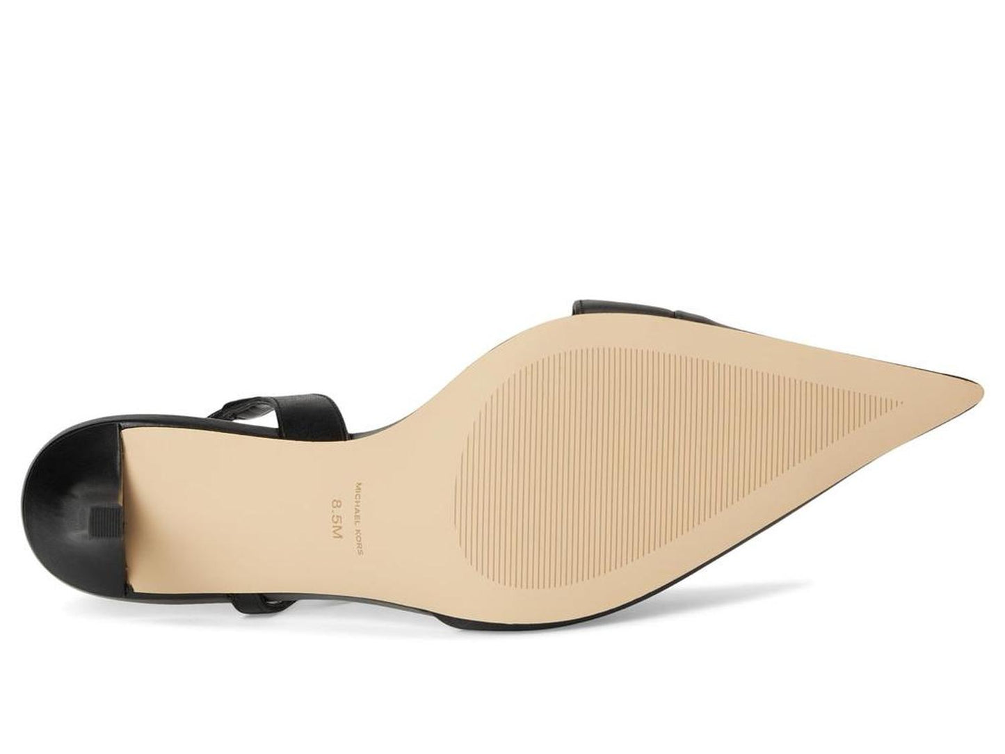 The MICHAEL Michael Kors® Jaida Pump slingback pump is a wardrobe staple that will never go out of style featuring simple yet chic asymmetrical upper as the focal design element and curated for both special occasions and everyday style in mind. This pump provides a sleek option with moderate heel height perfect for formal events or professional settings. Featuring pointed toe, stiletto heel, and brand detailing on the footbed.