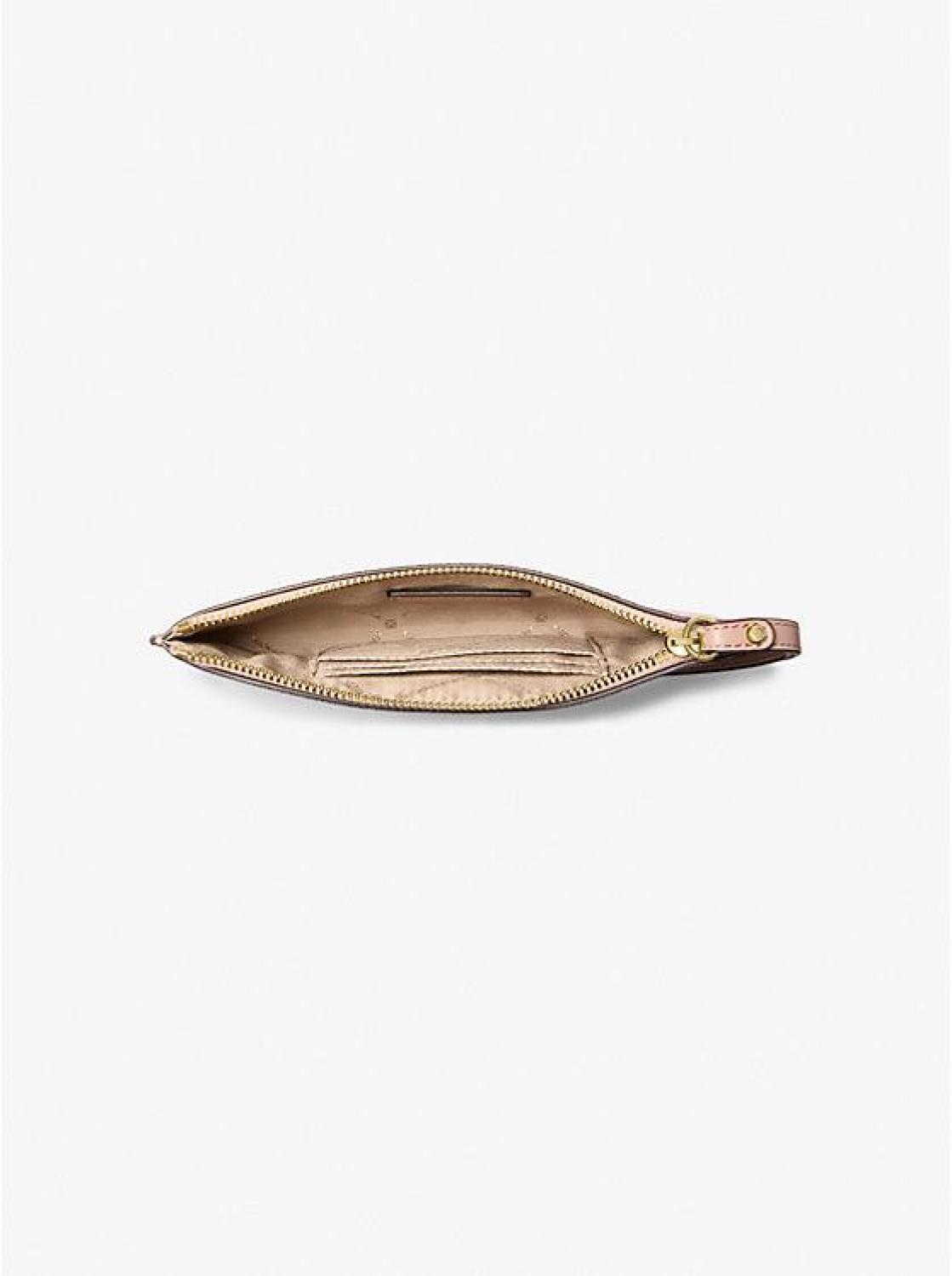 Crafted from Signature logo-print canvas, this wristlet is large enough to accommodate the basics yet small enough to fit into your everyday tote. The sleek profile makes it easy to dress up or down, and it includes interior slots for organizing your cards. Grab it and go for your next coffee run or alfresco happy hour.