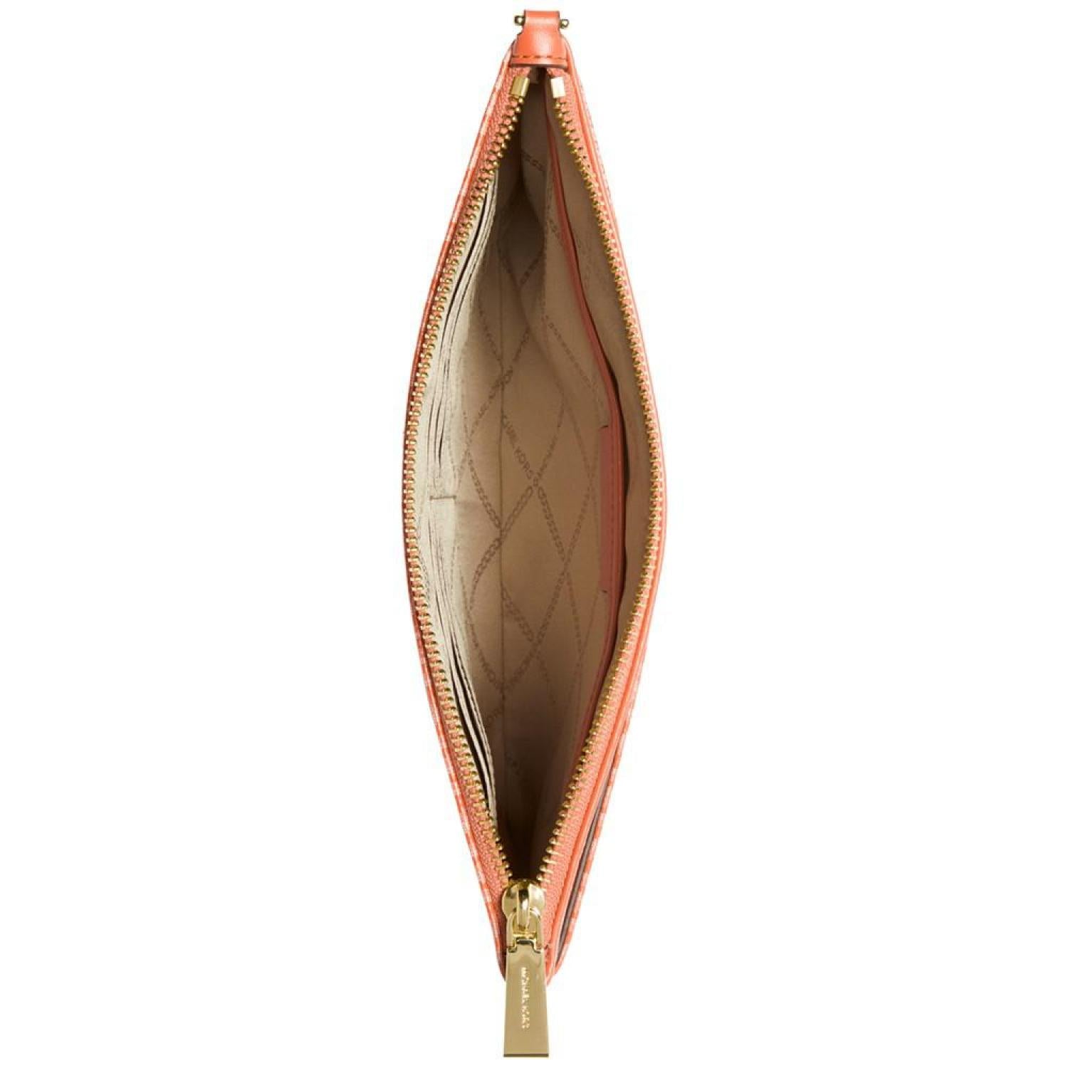 Lightweight and sophisticated, the Jet Set Charm Monogram Zippered Wristlet by MICHAEL Michael Kors is perfect for just the essentials. 10-1/4"W x 6-3/4"H x 3/4"D; 0.48 lbs. approx. weight 7-1/2"L wrist strap Zippered closure Hardware tone varies by color & exterior slip pocket Interior slip pocket & 6 card slots Cotton, polyvinylchloride; lining: polyester; trim: polyurethane, cotton, polyester Spot clean Imported